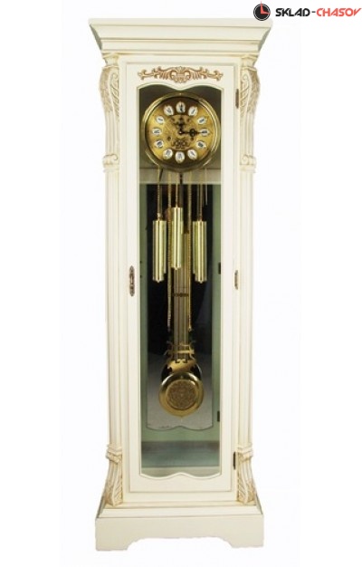 Цвет: Слоновая кость( IVORY) с патиной. Корпус :Дерево: Твердая липа, ручная резьба по дереву и зеркало на задней стенке, стеклянные боковины корпуса.Циферблат: металл с римскими цифрами.Механизм: 31 дневная заводная механическая механика Bimbam. Завод ключом. Двух-тональный бой (каждый час и каждые пол часа). Опция ручного отключения боя.Размер :Размер: 1930*645*320 мм. Размер упаковки: 2000*700*380 мм