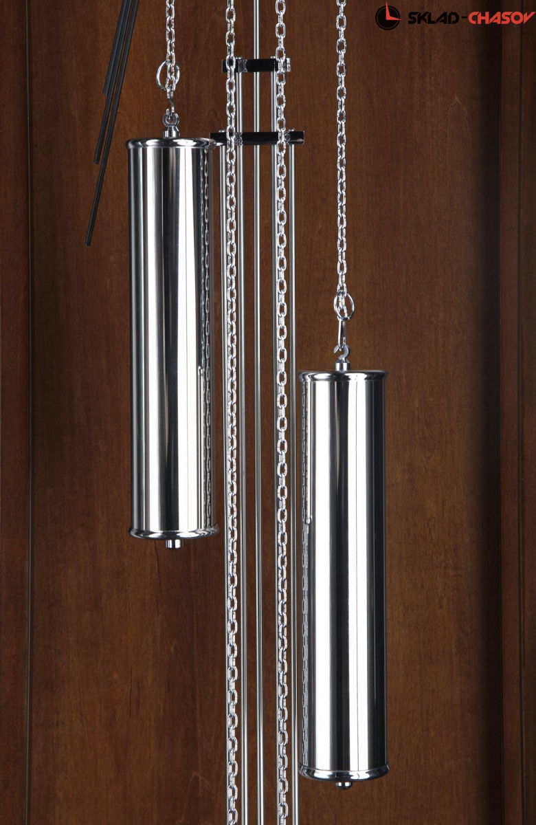 В часах установлен механизм Hermle (Германия) W0271 с цепным подвесом гирь.