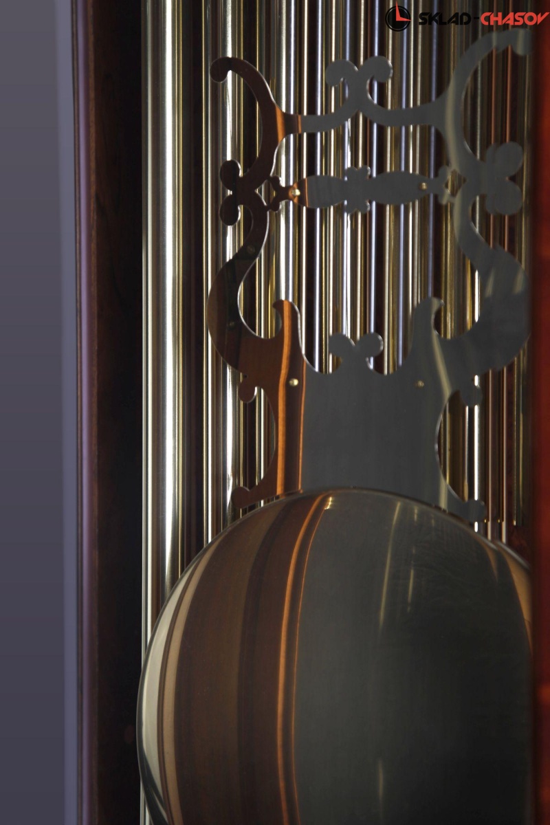 В часах установлен механизм Hermle (Германия) W1171 с тросовым подвесом гирь.