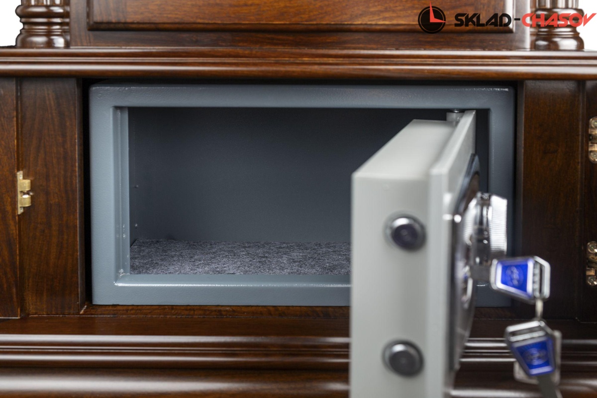 В основании часов установлен небольшой сейф