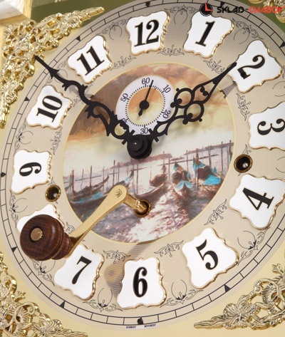 Механизм: механический немецкого производства с тросовым подвесом гирь и дополнительной секундной стрелкой на циферблате.