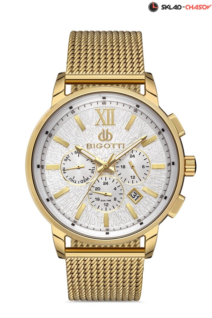 Стильные мужские часы из коллекции Milano. Корпус выполнен из латуни со стальным покрытием. Риски в виде штрихов и римских цифр. Часовая и минутная стрелки с люминесцентным покрытием. Браслет миланского плетения с регулируемой застежкой. Дополнительные функции: дата, день недели, 24-часовой формат времени, 2 часовых пояса. Размер корпуса 44