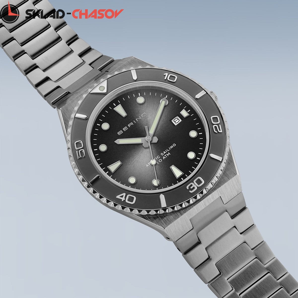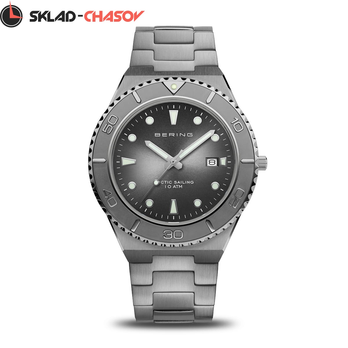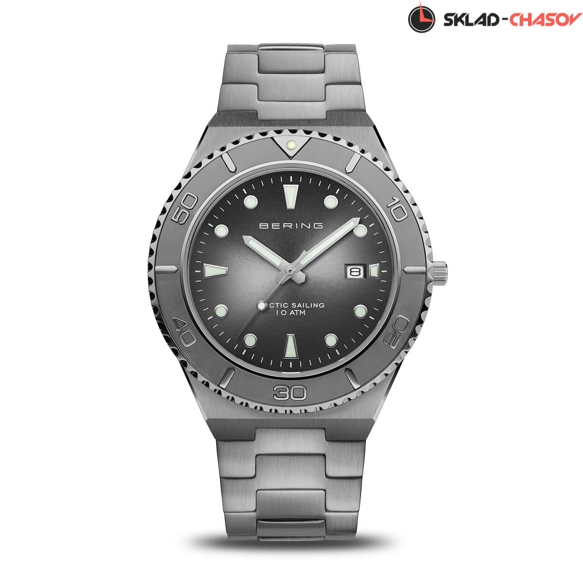 Безель, стрелки и часовые метки со светоотражающим напылением.