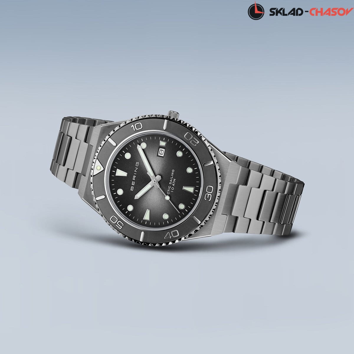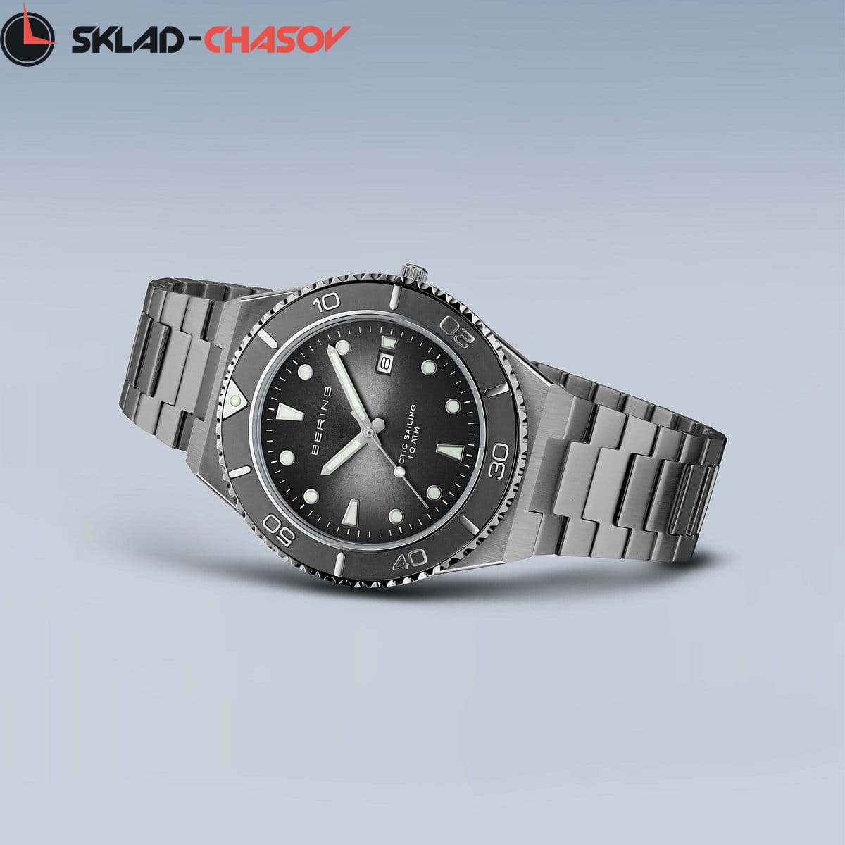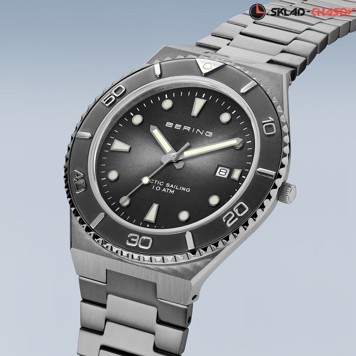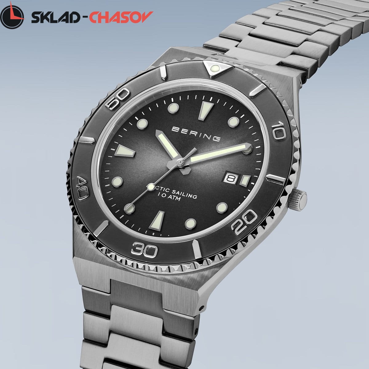 Безель, стрелки и часовые метки со светоотражающим напылением.