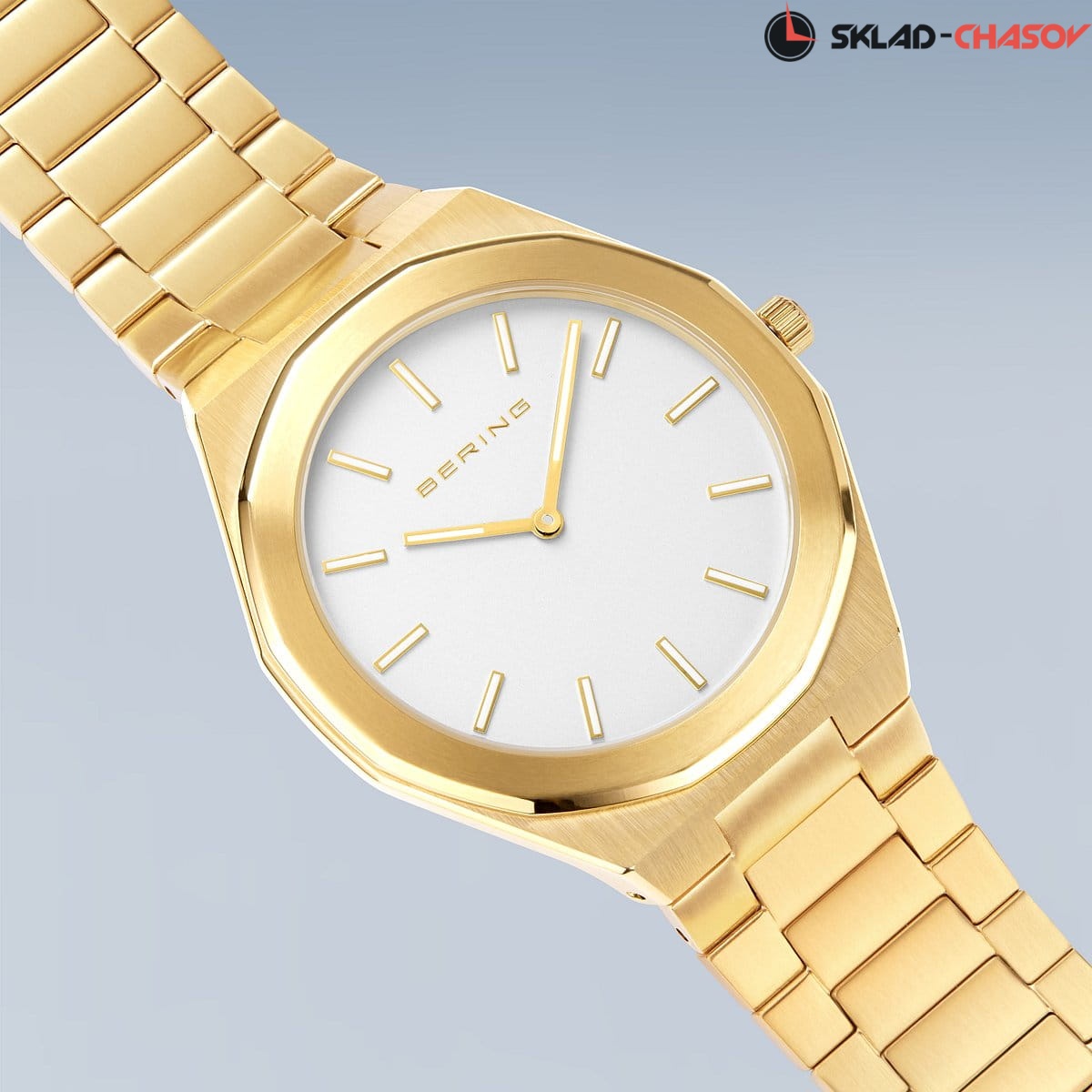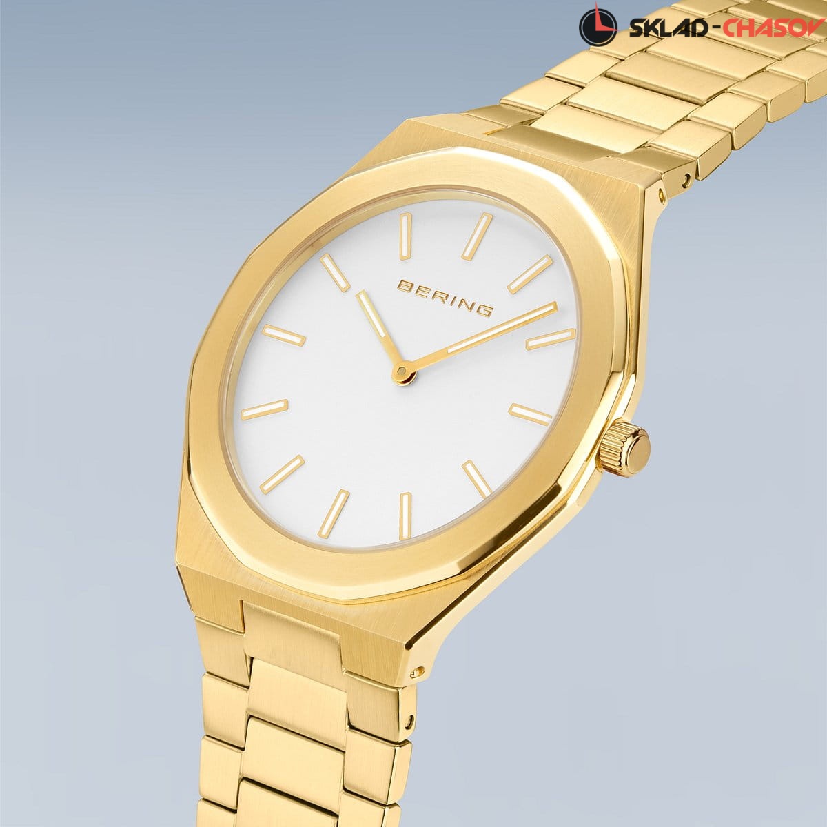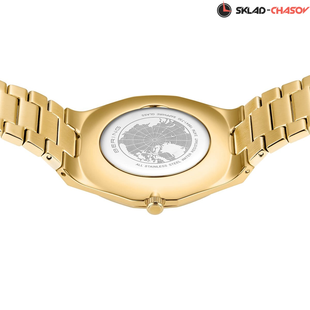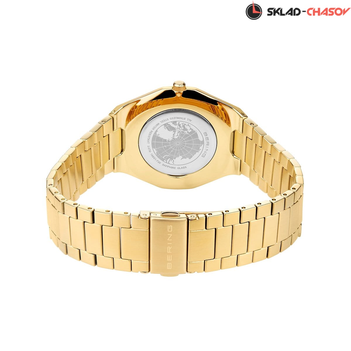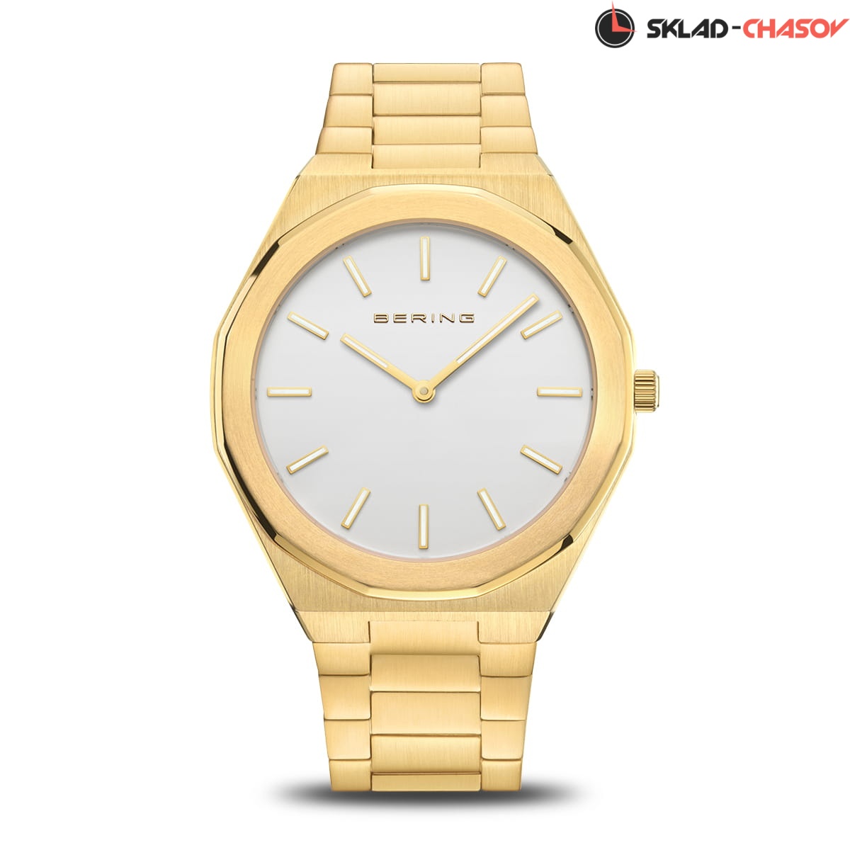 Стальной корпус с полировкой, сатинажем и золотым IP-покрытием. Диаметр 41мм.