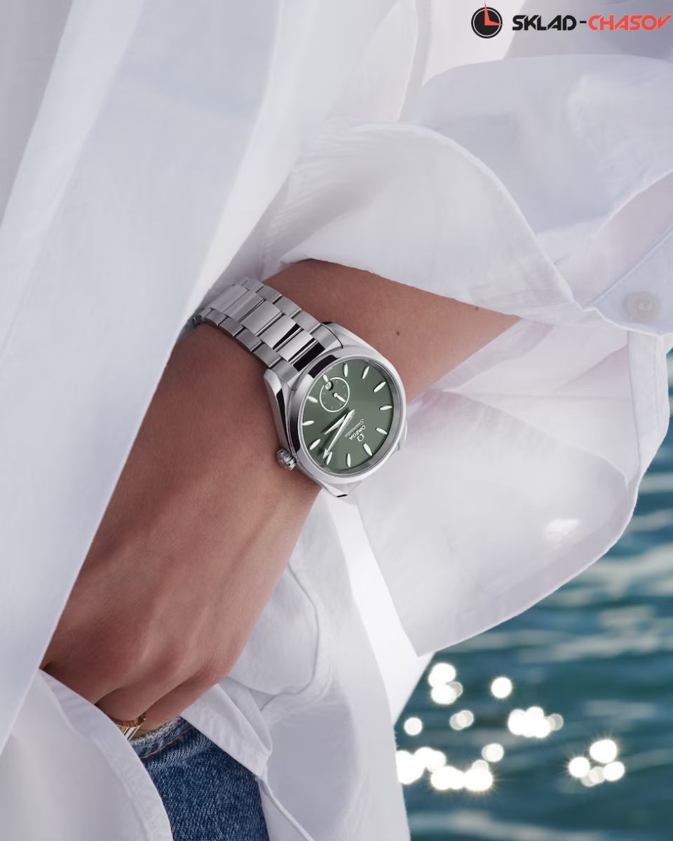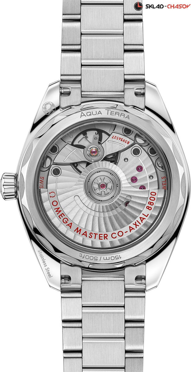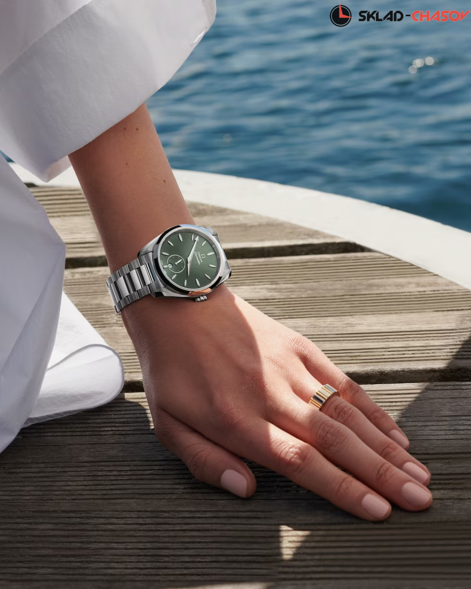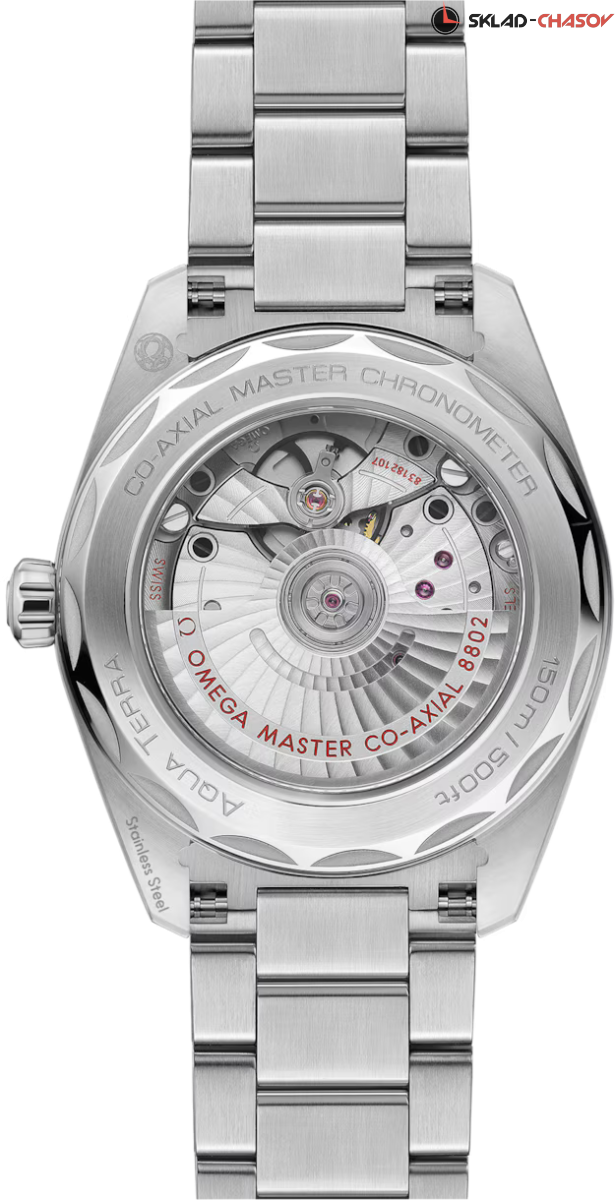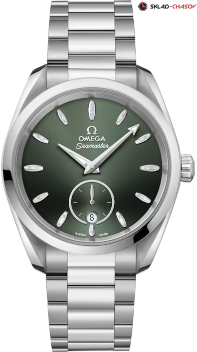 Наручные часы Omega Seamaster Aqua Terra выполнены в корпусе из нержавеющей стали диаметром 38 мм , толщиной 12,7 мм , ширина между ушками — 19 мм , общий вес составляет около 124 грамма. Циферблат тёмно-зелёного цвета имеет окошко даты в положении 6 часов и дополнительный циферблат малой секундной стрелки с кольцом из белого золота 18К. Стрелки с покрытием из родия и индексы в форме корпусов парусных яхт с вставками из перламутра придают модели элегантности. Стрелки и индексы оснащены белым люминесцентным покрытием, обеспечивающим читаемость в темноте. Стекло — выпуклое сапфировое стекло сапфировое стекло с двусторонним антибликовым покрытием антибликовое покрытие, задняя крышка прозрачная, украшена волнообразной гравировкой. Механизм — механический с автоподзаводом , калибр OMEGA Master Chronometer 8802 , сертифицированный METAS. Обладает запасом хода до 55 часов , антимагнитными свойствами и точностью от 0 до +5 секунд в сутки благодаря коаксиальному спуску и балансу из кремния. Функции: центральные часовая и минутная стрелки, малый циферблат секунд, индикация даты. Водозащита — 15 АТМ (150 метров) , что позволяет использовать часы в воде, включая плавание и дайвинг. Часы оснащены металлическим браслетом с полированной и матовой отделкой звеньев, застёжка — раскладная, с функцией быстрого регулирования. Это технологичная модель для делового и активного образа жизни, сочетающая морское наследие, швейцарское качество и современные стандарты исполнения.