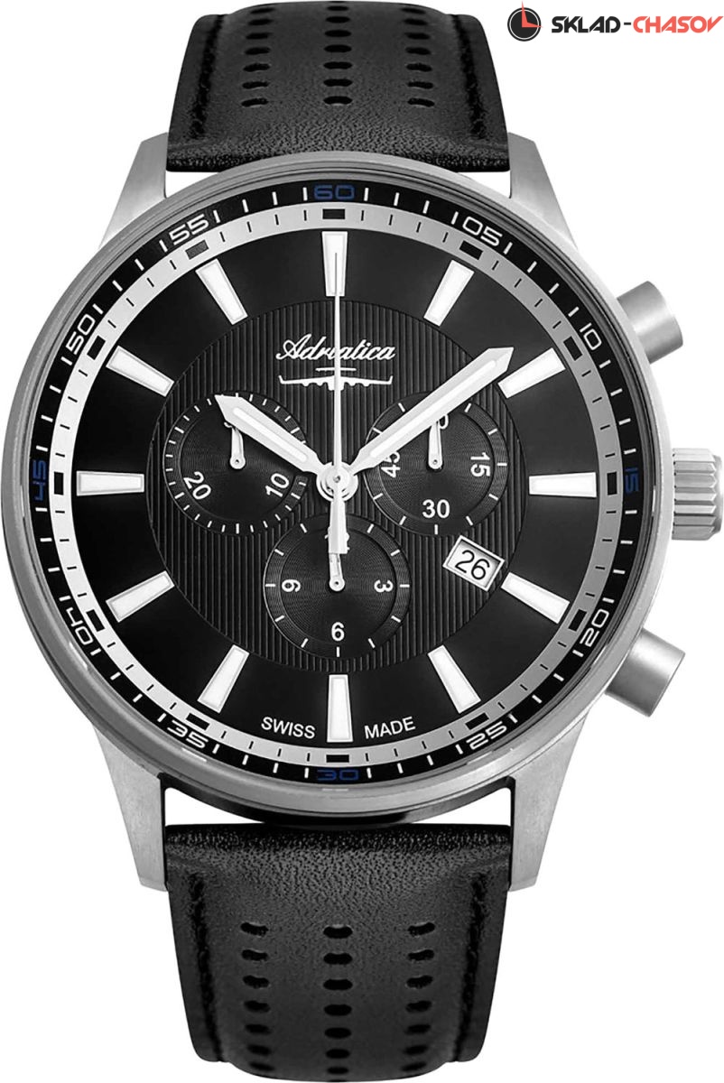 Мужские наручные часы-хронограф с секундомером в круглом титановом корпусе. Присутствует апертура даты. Точность хода обеспечивает швейцарский кварцевый механизм Ronda. Ремешок с классической застежкой. Гарантия 2 года.