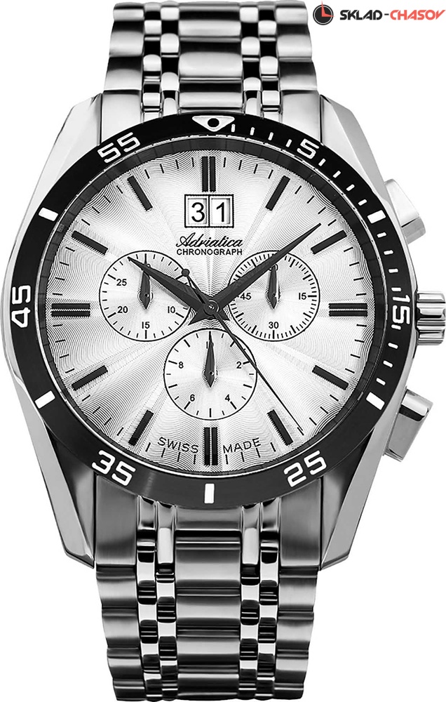 Мужские наручные часы-хронограф с секундомером. Тахиметрическая шкала. Присутствует апертура даты. Точность хода обеспечивает швейцарский кварцевый механизм Ronda. Браслет с раскладывающейся застежкой. Гарантия 2 года.