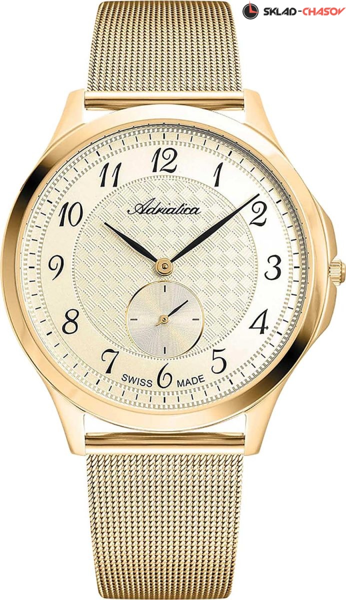 Стильные классические часы с круглым корпусом и браслетом миланского плетения. Секундная стрелка вынесена на отдельный циферблат. Заводная головка с защитой. Вес часов 57 грамм. Гарантия 2 года.