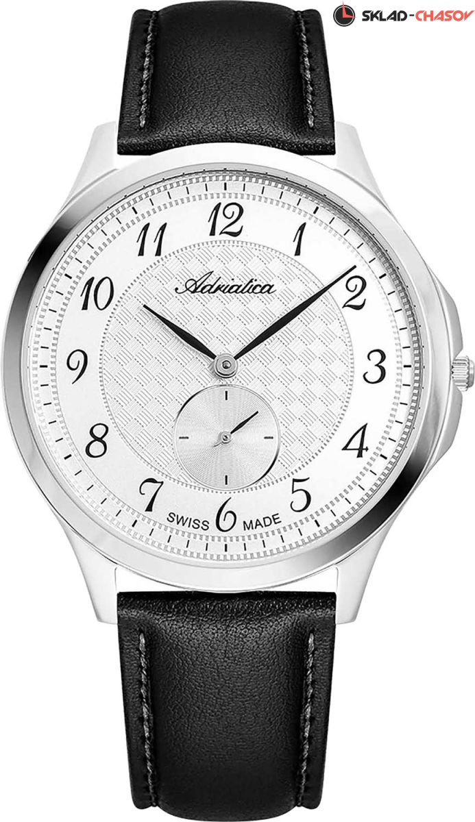 Стильные классические часы с круглым корпусом. Секундная стрелка вынесена на отдельный циферблат. Заводная головка с защитой. Ремешок с классической застежкой. Гарантия 2 года.
