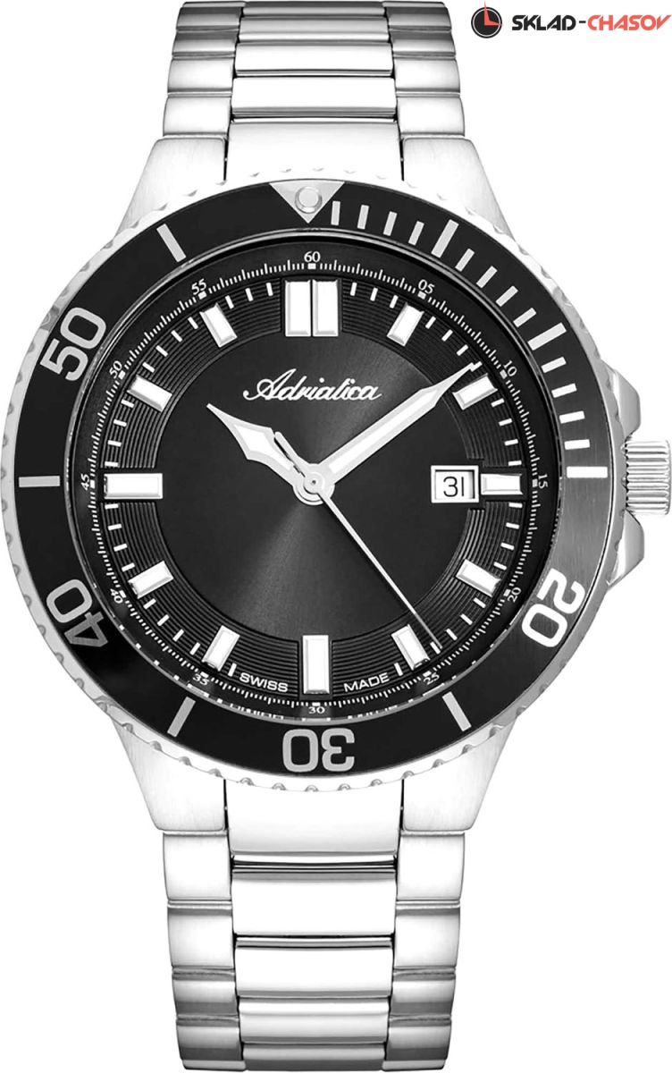 Классические мужские наручные часы со спортивными нотками в дизайне. Присутствует апертура даты. Циферблат закрыт минеральным стеклом с сапфировым покрытием. Точность хода обеспечивает швейцарский кварцевый механизм. Заводная головка с защитой. Браслет с раскладывающейся застежкой. Вес часов 179 грамм. Гарантия 2 года.