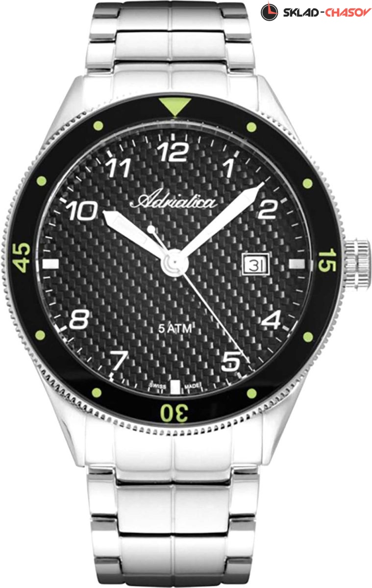 Мужские наручные часы Adriatica на стальном браслете. Присутствует апертура даты. Браслет с раскладывающейся застежкой. Гарантия 2 года.