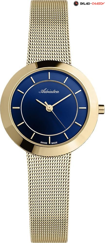 Женские наручные часы Adriatica на стальном браслете миланского плетения. Точность хода обеспечивает швейцарский кварцевый механизм Ronda 763.Гарантия 2 года.