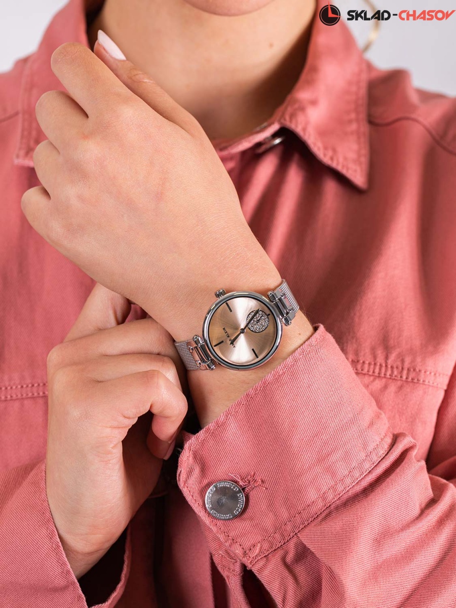 Роскошные, женственные часы, с сияющими кристаллами подчеркнут ваш современный образ. Crystal. Метки в виде штрихов. Секундная стрелка вынесена на отдельный циферблат. Браслет миланского плетения с ювелирной застежкой.