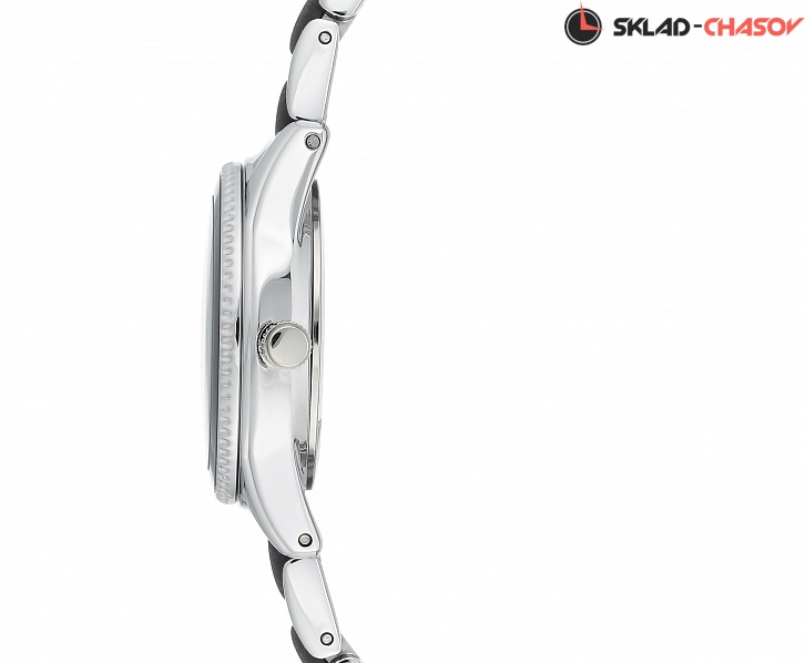 Стильное и интригующее сочетание материалов придаст вашему образу неповторимости и привлекательности. Plastic. Метки в виде штрихов. Круглый корпус. Безель с пластиковой вставкой. Браслет с пластиковыми вставками и ювелирной застежкой.