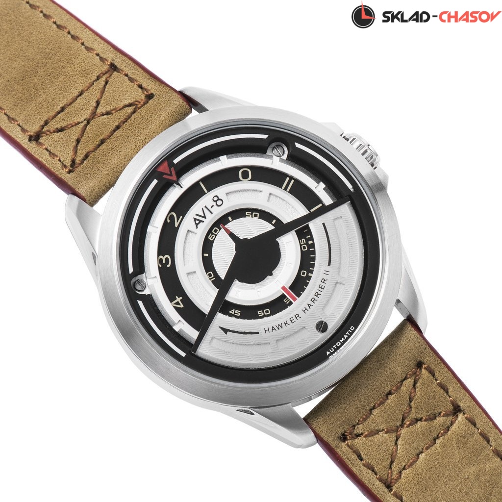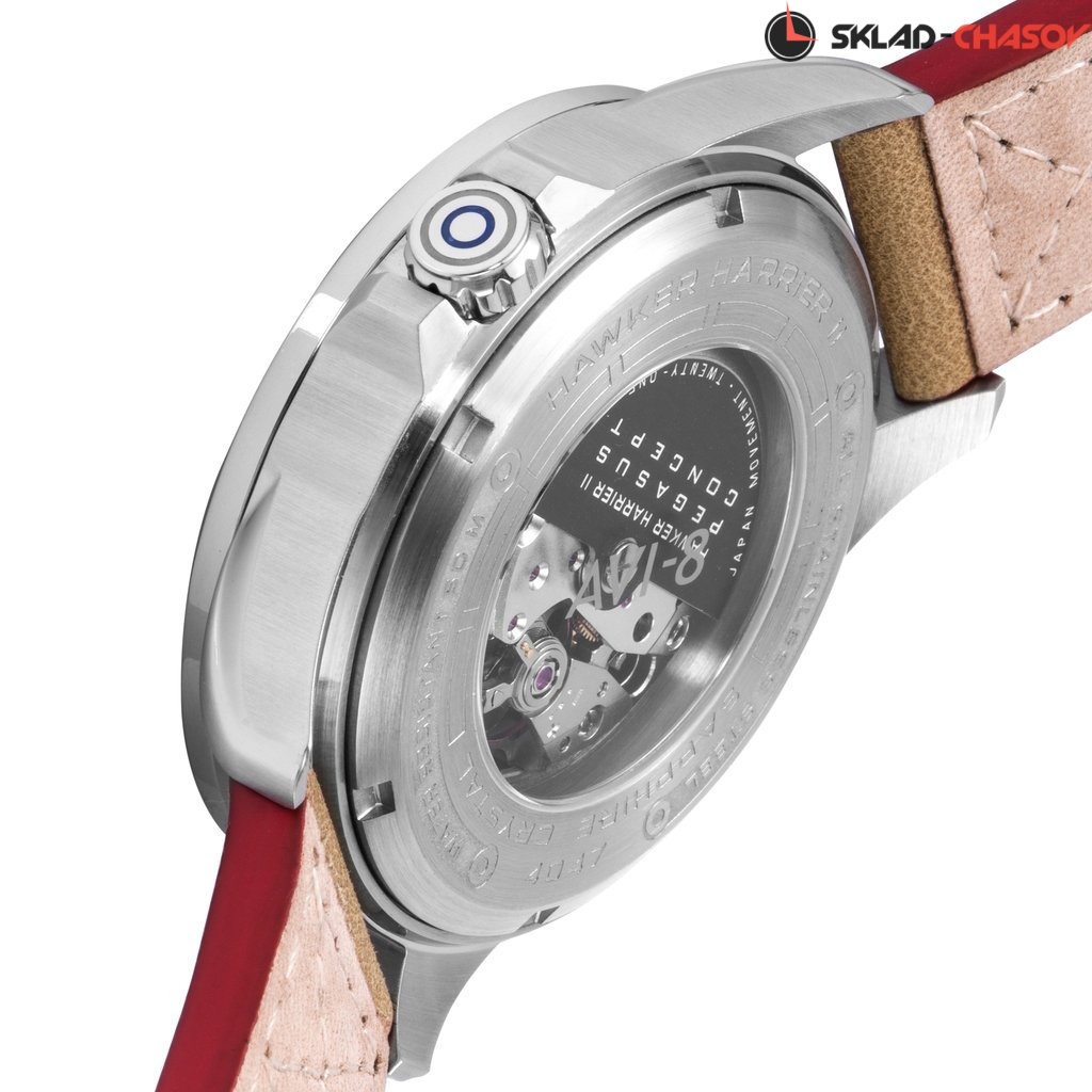 Надежные и удобные часы с оригинальным дизайном циферблата для сильного и мужественного мужчины. Hawker Harrier II. В механизме 21 камень. Возможность ручного завода. На трех вращающихся дисках указатели часов, минут, секунд. Большой диск отображает часы, средний - минуты, маленький - секунды. Завинчивающаяся прозрачная задняя крышка. Заводная головка с защитой