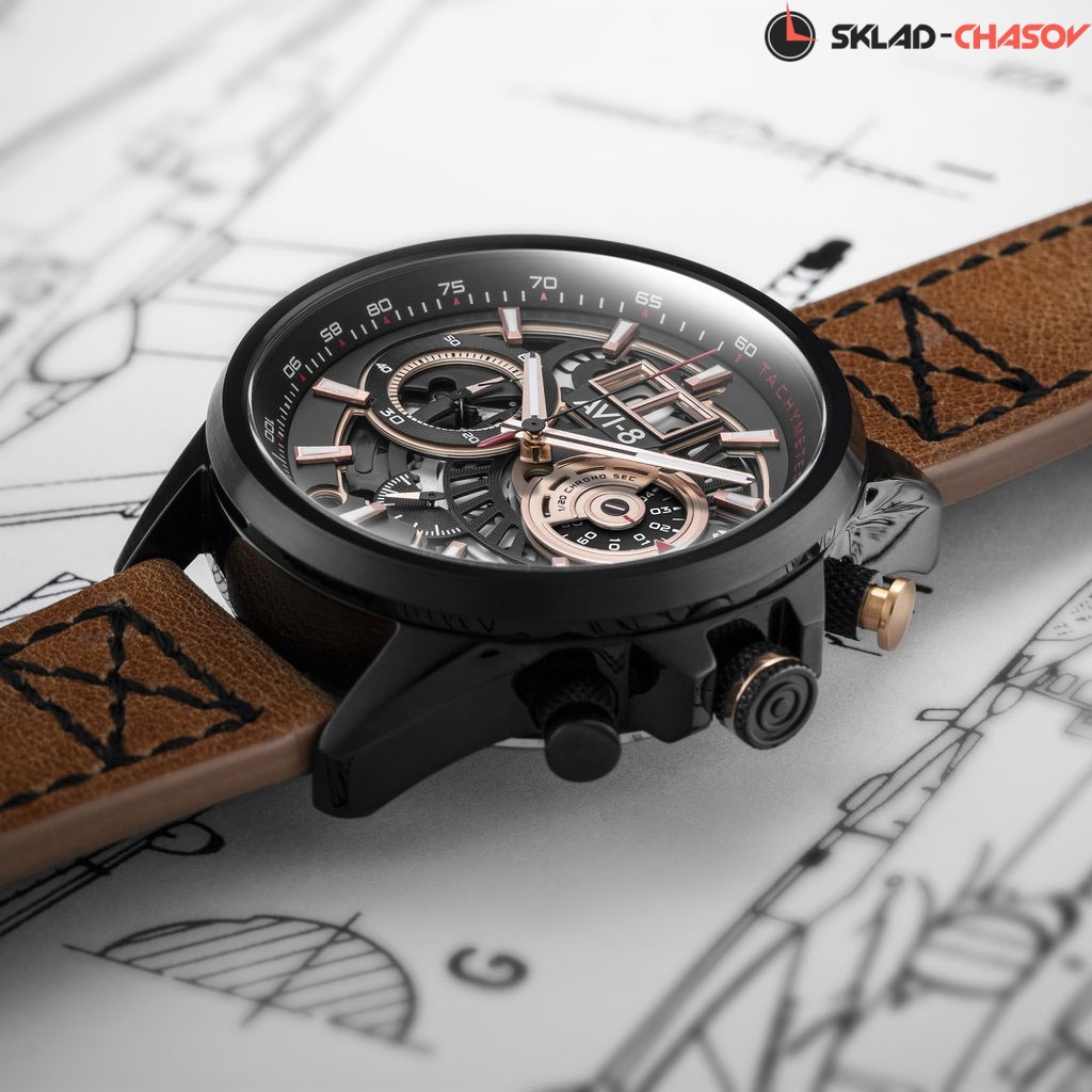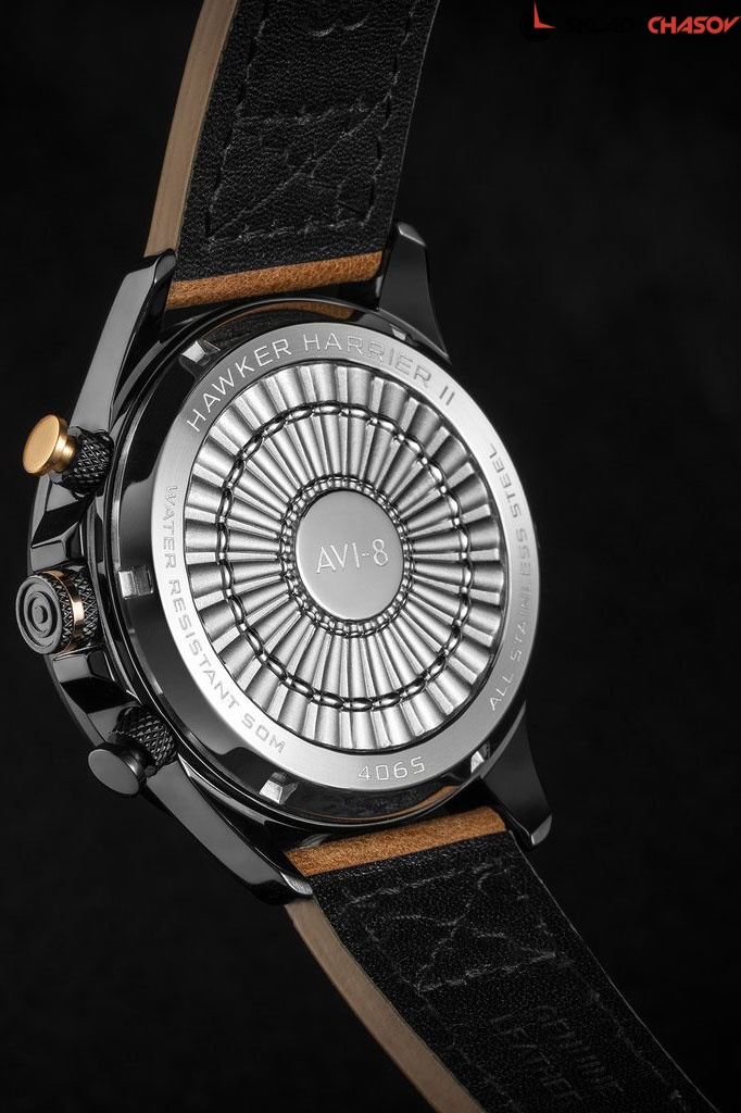 Массивные, многофункциональные авиаторские часы для мужчин высокого полета. С таким аксессуаром вам гарантированы высокие результаты. Hawker Harrier II. Часы-хронограф с секундомером и тахиметром. Заводная головка с защитой. Завинчивающаяся задняя крышка.