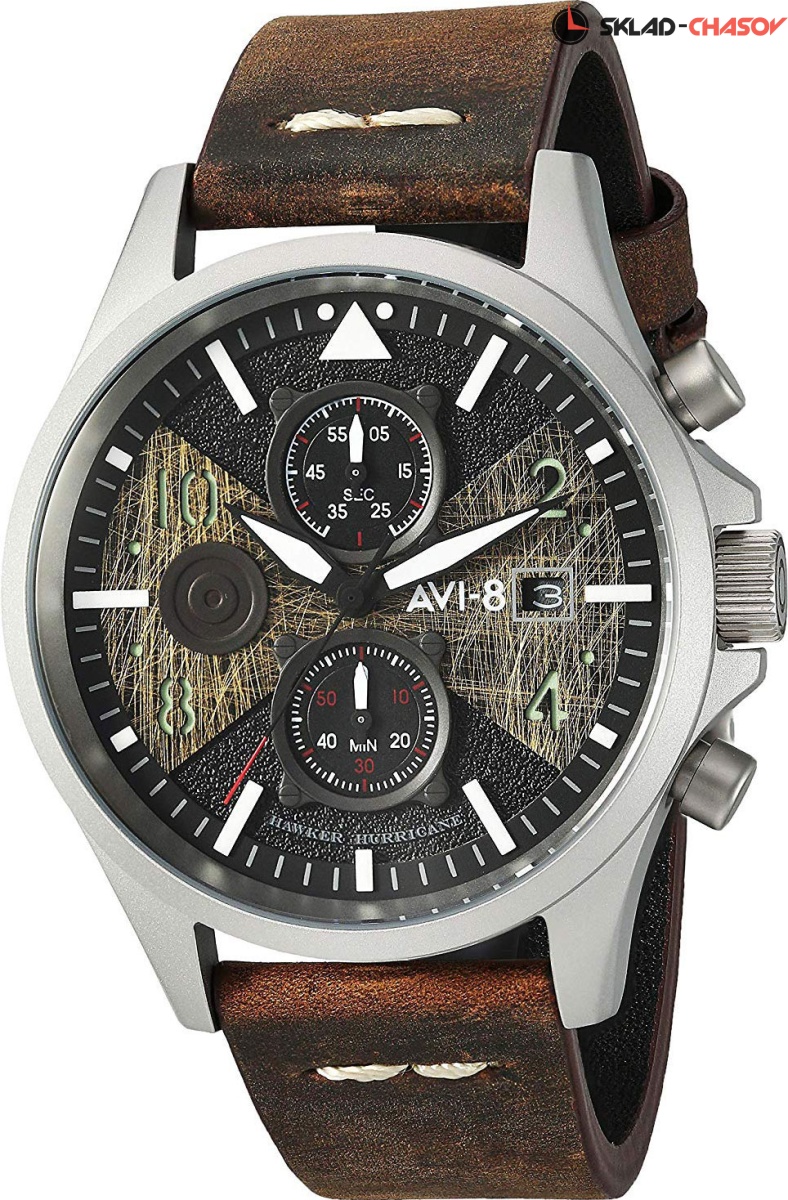 Надежные и удобные часы с оригинальным дизайном циферблата для сильного и уверенного в себе мужчины. Hawker Hurricane Bulman. Серия выпущена в честь Пола Уорда Спенсера ''Джорджа'' Булмана, в прошлом, пилота Британских Королевских ВВС и директора авиационной компании Hawker. Часы-хронограф с секундомером. Окошко даты. Заводная головка с защитой. Завинчивающаяся задняя крышка с изображением Hawker Hurricane. Hawker Hurricane - британский одноместный истребитель времен Второй мировой войны, который разработала фирма Hawker Aircraft Ltd. в 1934 году