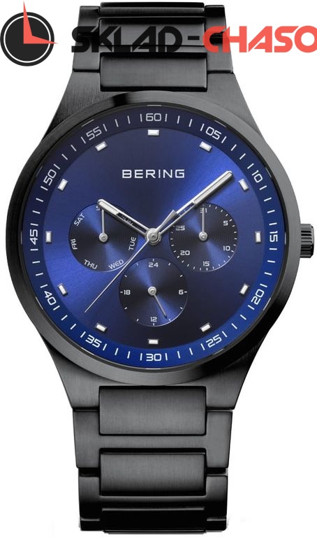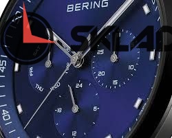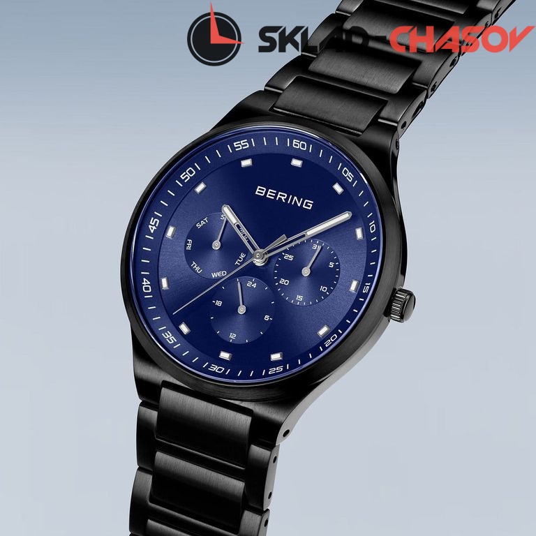 Синий циферблат с гильошированием в виде солнечных лучей.