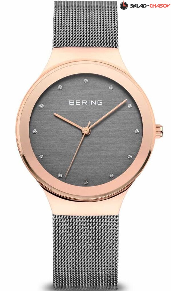 Полированный стальной корпус с IP-покрытием розовое золото. Диаметр 34 мм.
