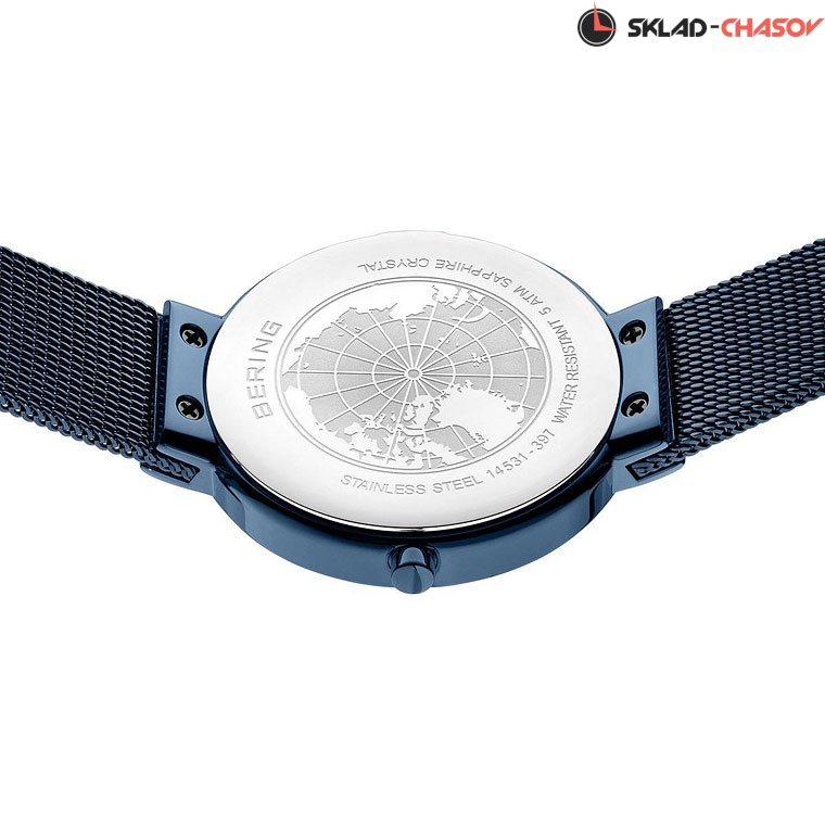 Полированный стальной корпус с синим IP-покрытием. Диаметр 31мм.