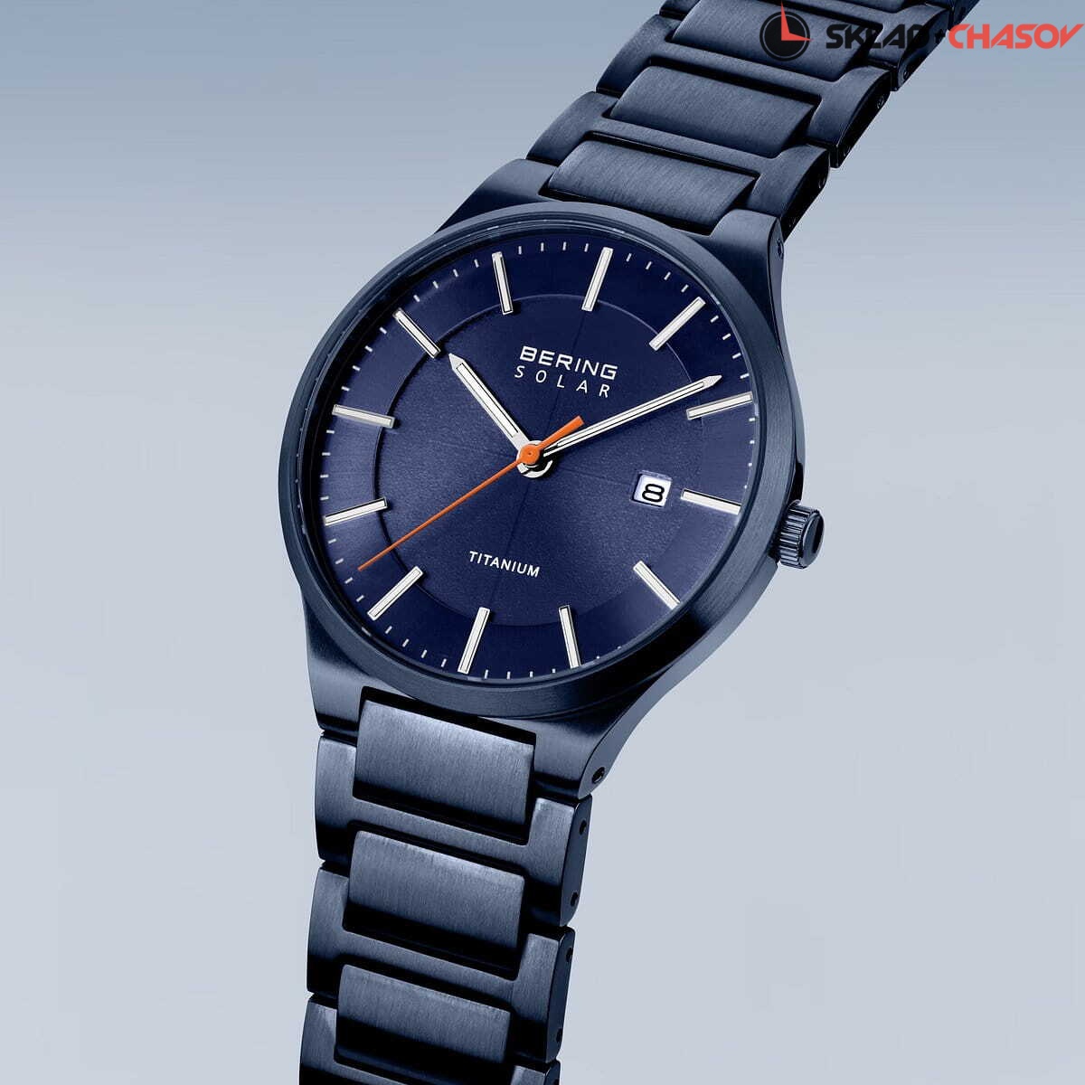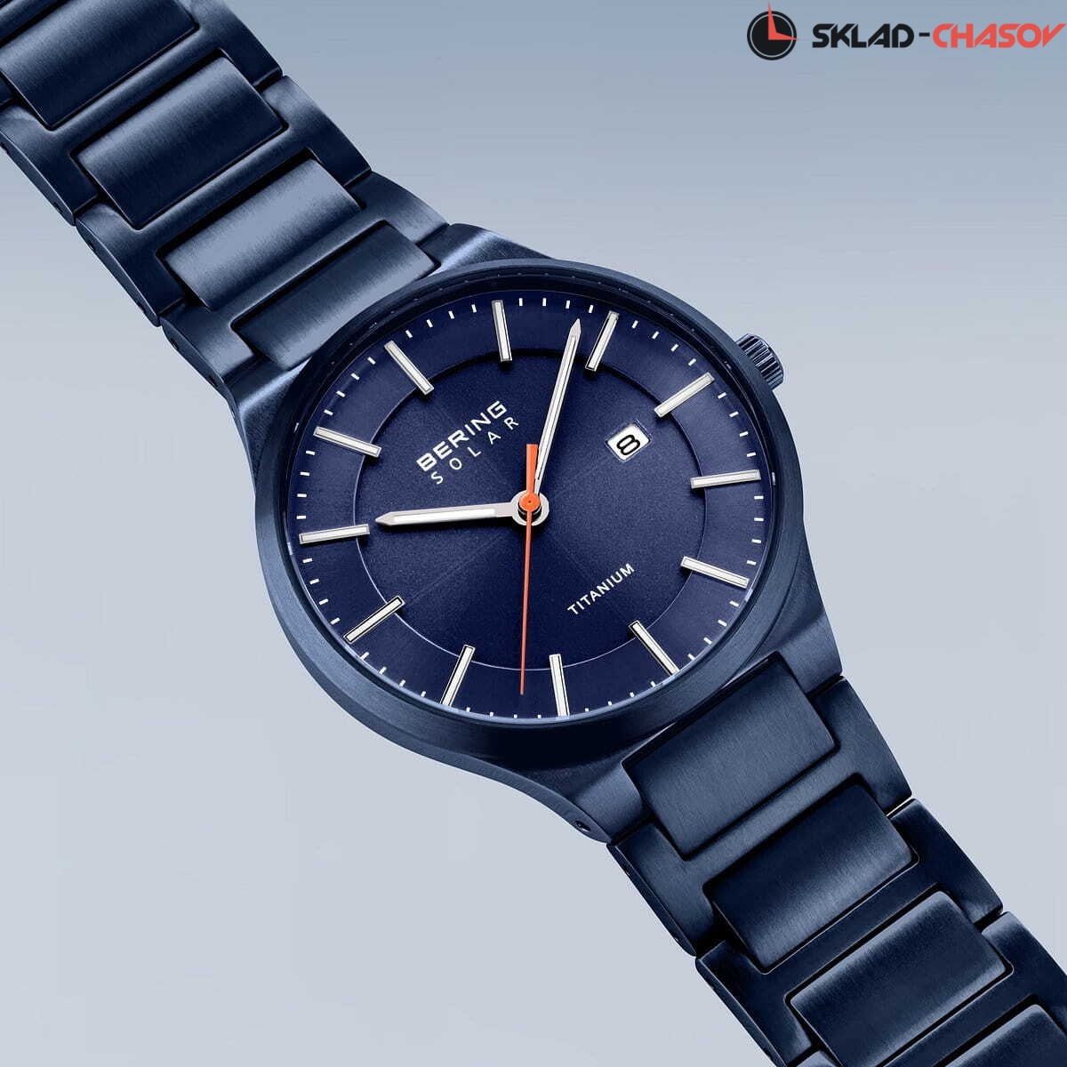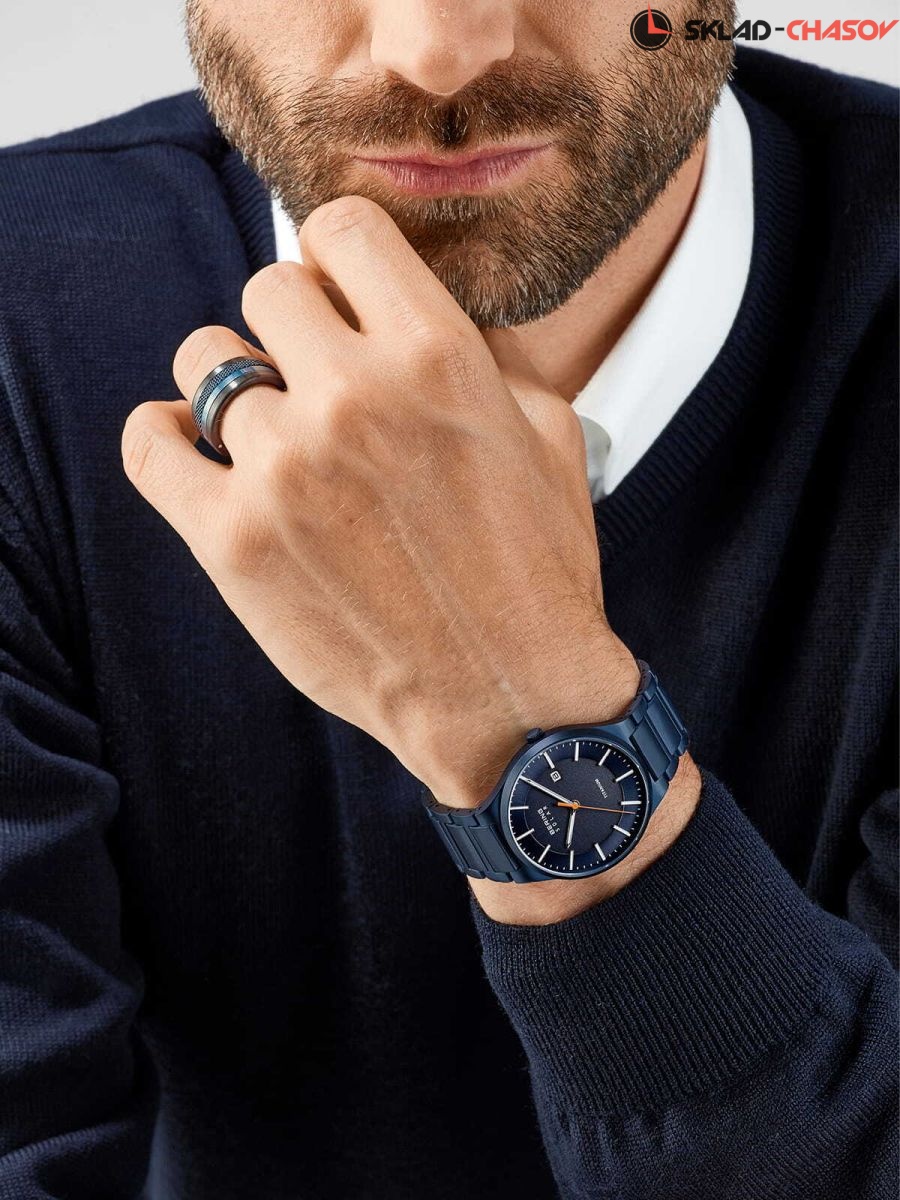 Титановый корпус с сатинажем и синим IP-покрытием. Диаметр 39мм.