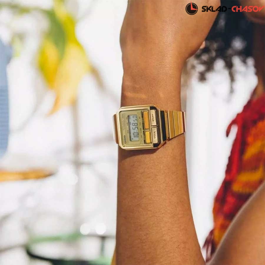 Интересный дизайн этого ретро-аксессуара идеально впишется в вашу коллекцию часов. Vintage. Унисекс. Отличительной чертой часов являются 4 кнопки на лицевой панели. Часы вдохновлены гаджетами 1980-х годов. Циферблат подсвечивается светодиодом. Цвет подсветки: оранжевый. Секундомер с точностью показаний 1/10с и временем измерения 1ч. Батарея рассчитана на 3 года. Браслет с регулируемой застежкой.