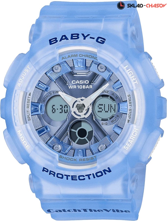 • Необритовое светонакопительное покрытие обеспечивает длительное послесвечение в темноте даже после кратковременного нахождения на свету. • Электрическая подсветка - для освещения циферблата используется светодиод. • Отображение текущего времени в основных городах и регионах мира. • Секундомер с точностью показаний 1/100 сек и максимальным временем измерения - 24 час. • Таймер обратного осчета. • 5 ежедневных будильников. • Функция повтора сигнала будильника (Snooze). • Особая ударопрочная конструкция защищает от ударов и вибрации. • Ремешок из полимерного материала.