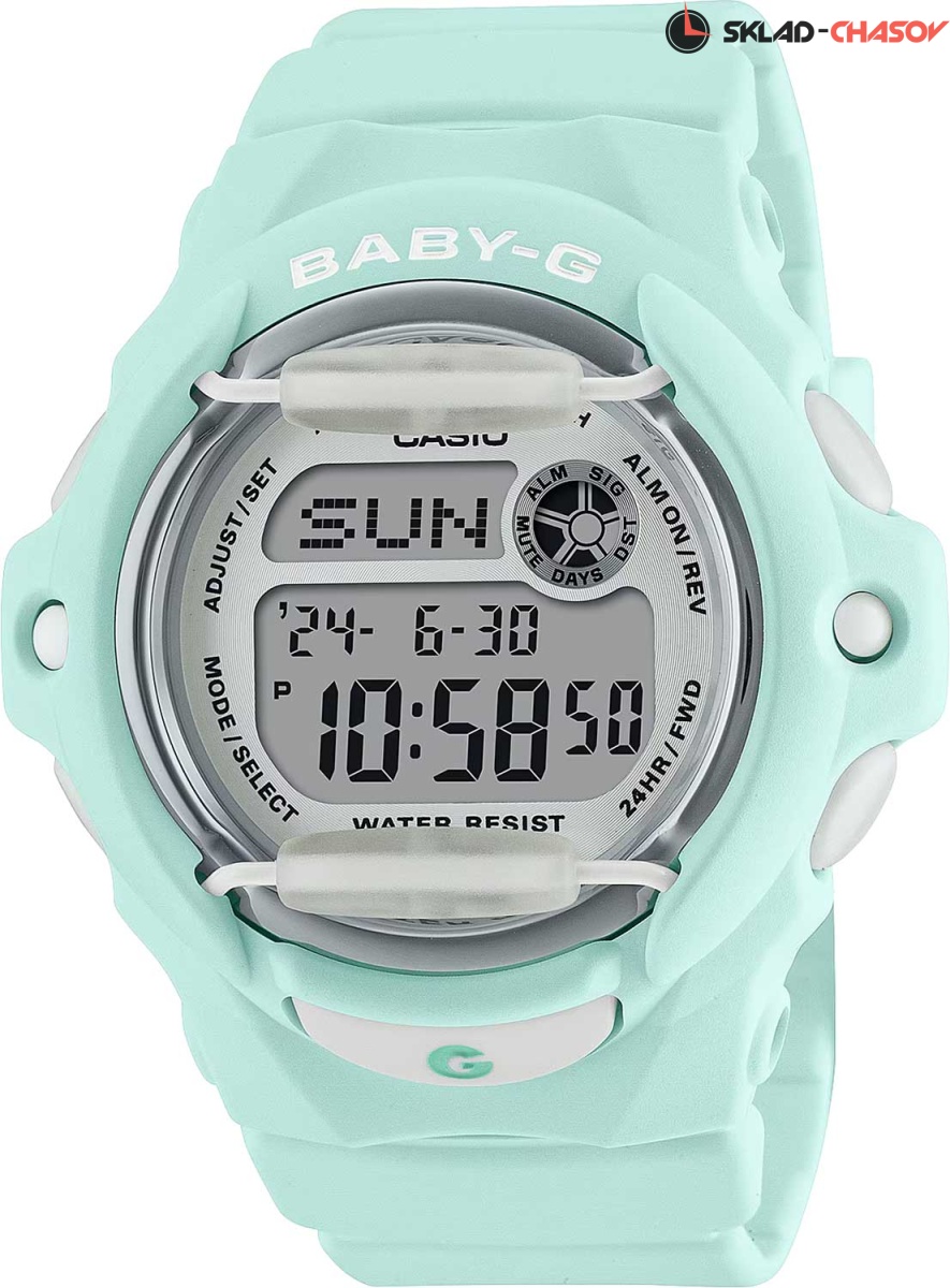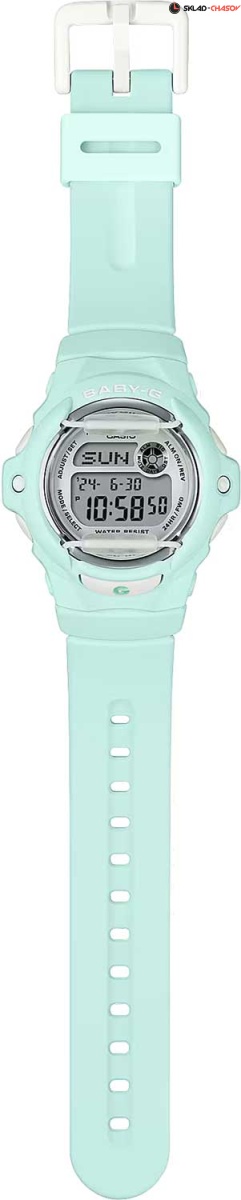 Часы с яркими нотками будут пользоваться популярностью среди девушек, ведущих активный образ жизни. Baby-G. Противоударный корпус защищает механизм от ударов и вибрации. Электролюминесцентная подсветка обеспечивает равномерное освещение всего циферблата, облегчая считывание данных. Послесвечение. Цвет подсветки: белый. 12-ти и 24-х часовой формат времени. Секундомер с точностью показаний 1/100с и временем измерения 24ч. SPLIT-хронограф. Таймер обратного отсчета от 1мин до 24ч. Мировое время – 30 городов (29 часовых поясов). Автоматический переход на зимнее и летнее время, возможность включения/отключения данной функции. Счетчик дней - отображает число дней между текущей и какой-либо другой датой. Записная книжка на 25 ячеек памяти для записи телефонных номеров и дополнительных данных о владельцах, каждая запись может включать в себя текст из 8 букв и 12 цифр. Функция включения/отключения звука. Стальной безель. Батарея рассчитана на 3 года. Стальная задняя крышка крепится на 4-х винтах. Ремешок с классической застежкой.