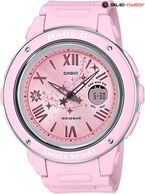 Это модель серии Star Dial, призванная вызвать образ сверкающей падающей звезды. Базовой моделью является BGA-150, популярная благодаря своей широкой круглой лицевой панели. Пастельно-розовый цвет был выбран потому, что он создает нежное впечатление. На циферблате изображены мерцающие падающие звезды, а в положении «9 часов» расположился сияющий кристалл. Ослепительное сияние кристаллов, напоминающих падающие звезды, производит великолепное впечатление. Эта модель свисает с запястья танцующими звездами, чтобы создать ощущение волнения.