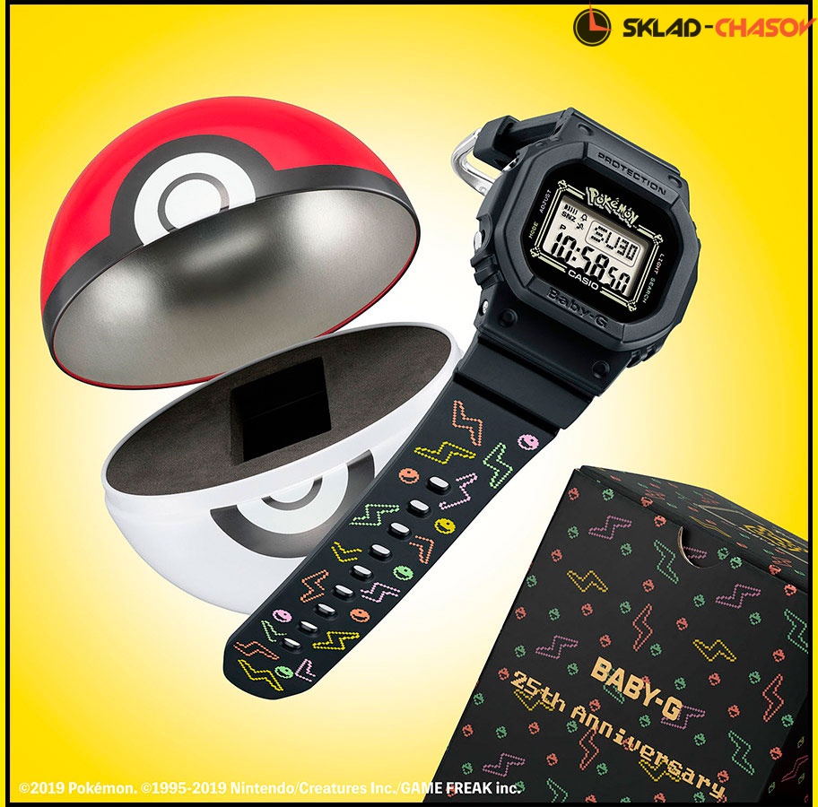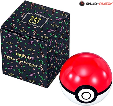 Окунитесь в 90-е годы 20-века с часами Casio The Pokemon - графика, дизайн, расцветка выполнены в стиле компьютерных игр того времени. Ностальгия не бывает скучной! Baby-G. Лимитированная серия. Эти часы - совместная работа Casio и компании The Pokemon. Модель выпущена в честь совместного 25-летнего юбилея коллекции Baby-G и The Pokemon. Белая электролюминесцентная подсветка освещает весь циферблат и после отпускания кнопки продолжает светиться еще некоторое время. При включении подсветки на циферблате появляется изображение покемона Пикачу. Мировое время – 48 городов (29 часовых поясов). Функция включения/отключения летнего времени. 12-ти и 24-х часовой формат времени. Секундомер с точностью показаний 1/100с и временем измерения 1ч. SPLIT-хронограф. Таймер обратного отсчета от 1сек до 24ч. Функция включения/отключения звука. Противоударный корпус защищает механизм от ударов и вибрации. Задняя крышка украшена выгравированным изображением покемона Пикачу. Ремешок из полимерного материала с изображениями молний и множества Poke Ball. Подарочная упаковка в виде большого Poke Ball.