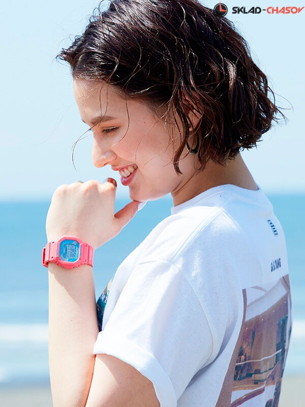 Если вы еще не увлекаетесь серфом, - не беда! Эти часы украсят ваше запястье и будут радовать каждый день, где бы вы не оказались: от скучного офиса до веселой вечеринки на пляже с друзьями! Baby-G G-Lide. Модель часов создана на базе BLX-560. Противоударный корпус защищает механизм от ударов и вибрации. Электролюминесцентная подсветка освещает весь циферблат, после отпускания кнопки свечение продолжается еще некоторое время. Цвет подсветки: сине-зеленый. Графическое отображение сведений о приливах и отливах на заданную дату и время. Мировое время – 48 городов (29 часовых поясов). Автоматический переход на зимнее и летнее время, возможность включения/отключения данной функции. Яхт-таймер используется для отсчета времени до начала регаты, время отсчета может быть задано от 1 до 10 минут, после каждой пройденной минуты издается звуковой сигнал, в течение последних 10 секунд сигнал издается каждую секунду. 12-ти и 24-х часовой формат времени. Секундомер с точностью показаний 1/100с и временем измерения 24ч. Сплит-хронограф. Таймер обратного отсчета от 1мин до 24ч с автоповтором. Типы сигналов: ежедневный, ежемесячный, каждый день определенного месяца, на определенную дату. Световая индикация сигнала. Отображение возраста и фазы Луны. Функция включения/отключения звука. Батарея рассчитана на 7 лет. Имеется мужской вариант модели GLX-5600VH-4ER.