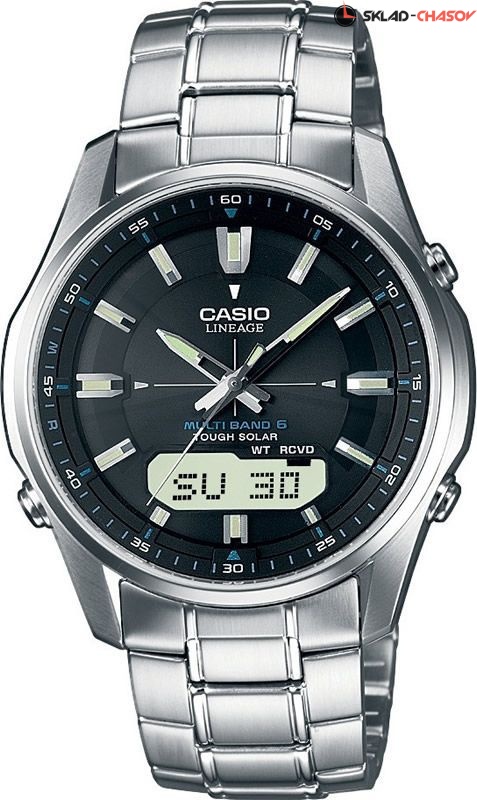 Питание от солнечной энергии. Светонакопительное покрытие необрит продолжает светиться в темноте даже после непродолжительного пребывания на свету. Коррекция текущего времени радиосигналом на территории почти всей Европы, США, Китая и Японии. Мировое время. Секундомер с точностью показаний 1/100с и временем измерения 100мин. 12-ти и 24-х часовой формат времени. Раскладывающаяся застежка, расстегиваемая одним касанием. 5 будильников, ежечасный сигнал. Вес: 116 г. Гарантия 2 года.
