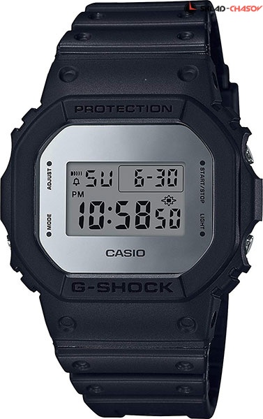 Черные матовые джишоки в олдскул корпусе из серии G-SHOCK DW-5600 с зеркально-хромовой окантовкой циферблата, выпущены к 35-ти летию G-SHOCK. G-Specials Metallic Mirror Face. Лимитированная серия часов с оригинальным зеркальным кантом. Для достижения максимально эффекта зеркальной поверхности, с переливами и красивыми рефлексами от света, Casio нанесли с помощью напыления светоотражающие частицы краски прямо на внутреннюю поверхность стекла. Благодаря этому окантовка циферблата, в зависимости от освещения, может выглядеть от светло-серой до абсолютно черной. Противоударный корпус защищает механизм от ударов и вибрации. Электролюминесцентная подсветка освещает весь циферблат, после отпускания кнопки свечение продолжается еще некоторое время. 12-ти и 24-х часовой формат времени. Секундомер с двумя точностями показаний: 1/100с (до 1ч) и 1с (после 1ч) и временем измерения 24ч. Сплит-хронограф. Таймер обратного отсчета от 1мин до 24ч с автоповтором. Типы сигналов: ежедневный, ежемесячный, каждый день определенного месяца, на определенную дату. Световая индикация сигнала.