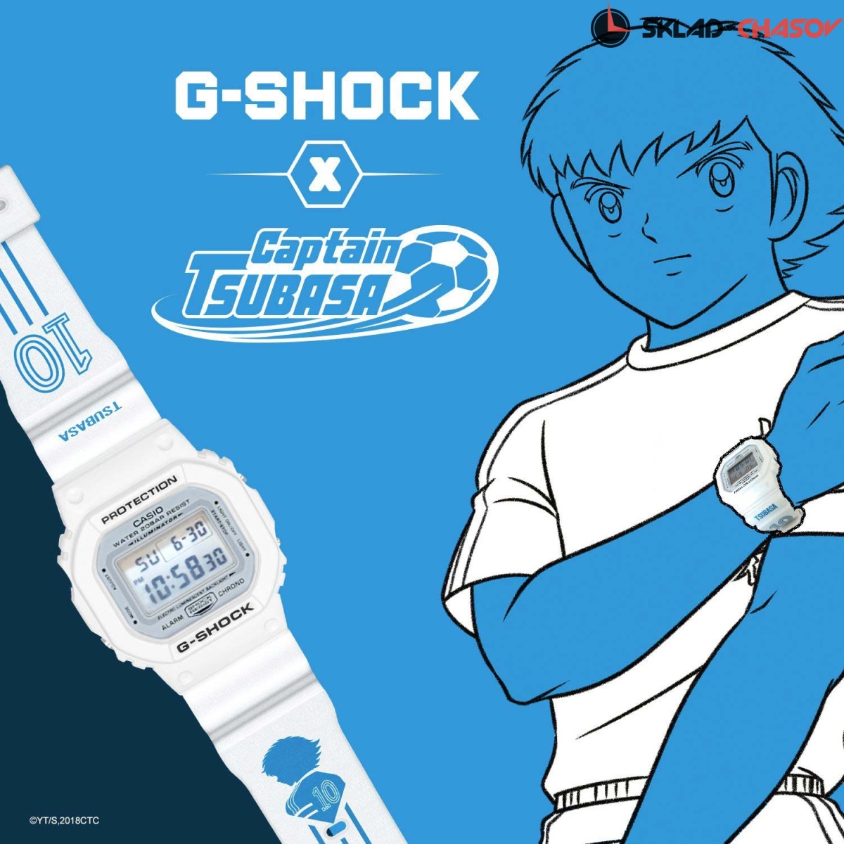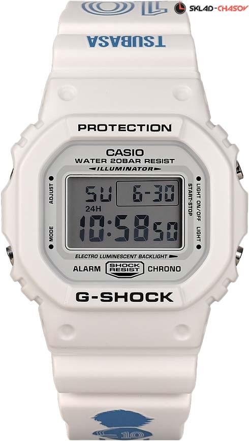 Яркая новинка от Casio придется по душе фанатам аниме и футбола. G-Shock. Ограниченная серия вдохновленная аниме-сериалами о футболе «Капитан Цубаса». Противоударный корпус защищает механизм от ударов и вибрации. Электролюминесцентная подсветка освещает весь циферблат. После отпускания кнопки, свечение продолжается еще некоторое время. Световая индикация сигнала. 12-ти и 24-х часовой формат времени. Секундомер с двумя точностями показаний: 1/100с (до 1ч) и 1с (после 1ч) и временем измерения 24ч. SPLIT-хронограф. Таймер обратного отсчета от 1с до 24ч с автоповтором. Будильник с автоповтором. Типы сигналов: ежедневный, ежемесячный, каждый день определенного месяца, на определенную дату. Ремешок из полимерного материала украшен изображением капитана Цубаса и цифрой 10. Классическая застежка. Подарочная упаковка.