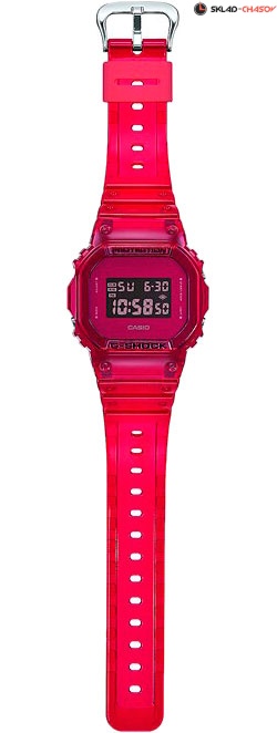 Многофункциональные часы в прозрачном корпусе идеально подойдут активным молодым людям, которые любят заниматься спортом. G-Shock. Полупрозрачная модель часов создана на базе DW-5600. Противоударный корпус защищает механизм от ударов и вибрации. Электролюминесцентная подсветка освещает весь циферблат. После отпускания кнопки, свечение продолжается еще некоторое время. Световая индикация сигнала. Цвет подсветки: сине-зеленый. 12-ти и 24-х часовой формат времени. Секундомер с двумя точностями показаний: 1/100с (до 1ч) и 1с (после 1ч) и временем измерения 24ч. SPLIT-хронограф. Таймер обратного отсчета от 1с до 24ч с автоповтором. Типы сигналов: ежедневный, ежемесячный, каждый день определенного месяца, на определенную дату. Ремешок из полимерного материала.