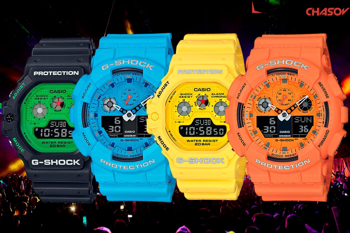 Многофункциональные часы с ярким дизайном - выбор молодых и активных. G-Shock. Вдохновением для создания этой цветовой вариации часов послужили всевозможные музыкальные фестивали, рок-концерты и другие молодежные мероприятия под открытым небом. Унисекс. Противоударный корпус защищает механизм от ударов и вибрации. Электролюминесцентная подсветка обеспечивает равномерное освещение всего циферблата, облегчая считывание данных. Мировое время. 12-ти и 24-х часовой формат времени. Секундомер точностью 1/100с и временем измерения 1ч. Сплит-хронограф. Таймер обратного отсчета от 1с до 24ч с автоповтором.