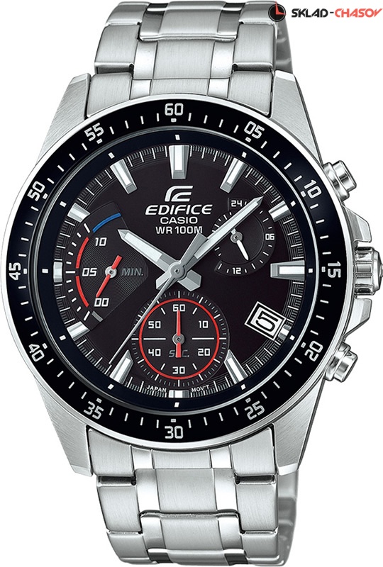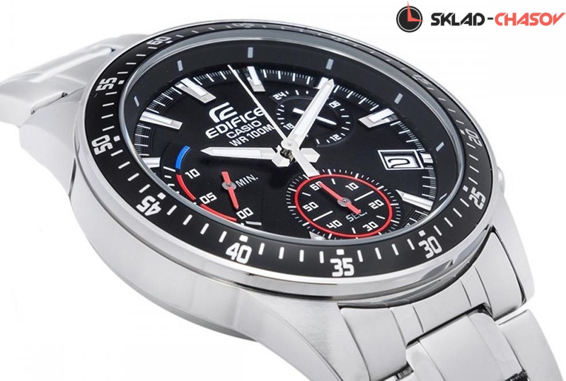Мужской практичный хронограф Casio Edifice. Светонакопительное покрытие необрит продолжает светиться в темноте даже после непродолжительного пребывания на свету. Секундомер с точностью показаний 1 сек. и временем измерения 10 мин. 12-ти и 24-х часовой формат времени. Ретроградный указатель минутной стрелки хронографа. Заводная головка с защитой. Завинчивающаяся задняя крышка. Раскладывающаяся застежка, расстегиваемая одним касанием. Вес часов 144 грамма. Гарантия 2 года.