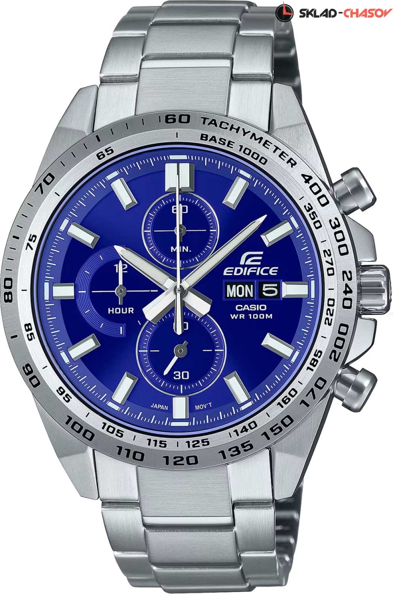 Этот удобный хронограф прослужит вам очень долго, а точный японский механизм не позволит потерять ни секунды вашего времени. Edifice. Часы-хронограф с секундомером и тахиметром. Секундомер с точностью показаний 1с и временем измерения 12ч. Метки в виде штрихов. Окошко даты и дня недели находится в положении 3 часа. Заводная головка с защитой. Батарея рассчитана на 5 лет. Задняя крышка с винтовым фиксатором. Браслет с тройной раскладывающейся застежкой, расстегиваемой одним касанием.