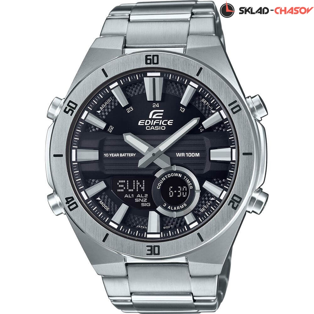 Кварцевый хронограф. Часы, минуты, секунды, дата, секундомер. 12/24х часовой формат времени. Автоматический календарь до 2099 года. Телефонная книжка (до 30 номеров). Мировое время в 29 часовых поясах. 3 будильника. Таймер. Корпус и браслет выполнены из нержавеющей стали. Размер корпуса 52х48х14 мм. Минеральное стекло. Водостойкость WR 100.
