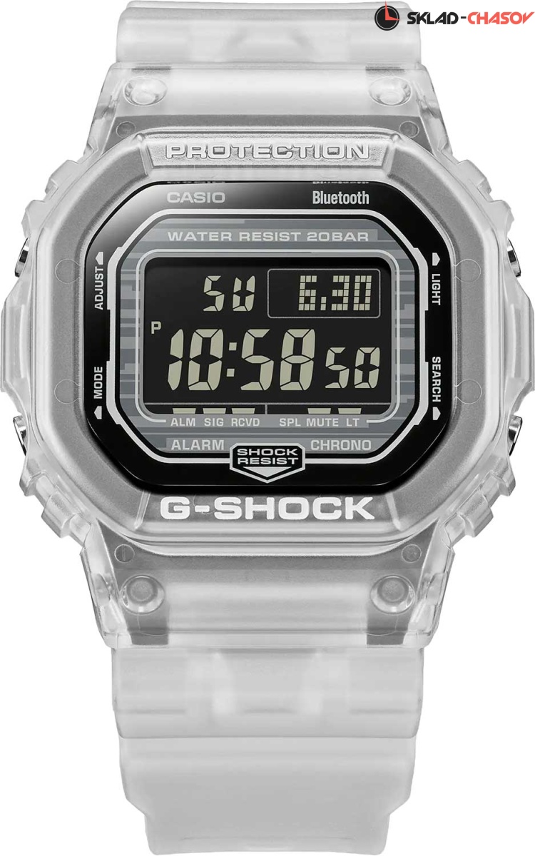 Часы от Casio идеально подходят для тех, кто предпочитает спортивный стиль, но при этом остается в тренде. G-Shock. Новинка в серии DW-5600 с возможностью синхронизации со смартфоном. Противоударный корпус защищает механизм от ударов и вибрации. Электролюминесцентная подсветка освещает весь циферблат, после отпускания кнопки свечение продолжается еще некоторое время. Настраиваемое послесвечение 1,5 или 3сек. Цвет подсветки: белый. 12-ти и 24-х часовой формат времени. Секундомер с двумя точностями показаний: 1/100с (до 1ч) и 1с (после 1ч) и временем измерения 24ч. SPLIT-хронограф. Таймер обратного отсчета от 1с до 24ч. Мировое время – 38 городов (38 часовых поясов), всемирное координированное время (UTC). Автоматический переход на зимнее и летнее время, возможность включения/отключения данной функции. Переключение между домашним и мировым временем. Беспроводная технология Bluetooth® со сверхнизким потреблением энергии для синхронизации со смартфоном. При подключении к смартфону часы автоматически корректируют текущее время, в том числе переход на зимнее/летнее время, копируют настройки мирового времени более чем для 300 городов. Отображение дней недели на шести языках. Функция поиска телефона и включения/отключения звука. Водонепроницаемость 20 Бар в соответствии с ISO 2281. Стальная задняя крышка крепится на 4-х винтах. Батарейка рассчитана на 3 года. Ремешок из полимерного материала с классической застежкой.