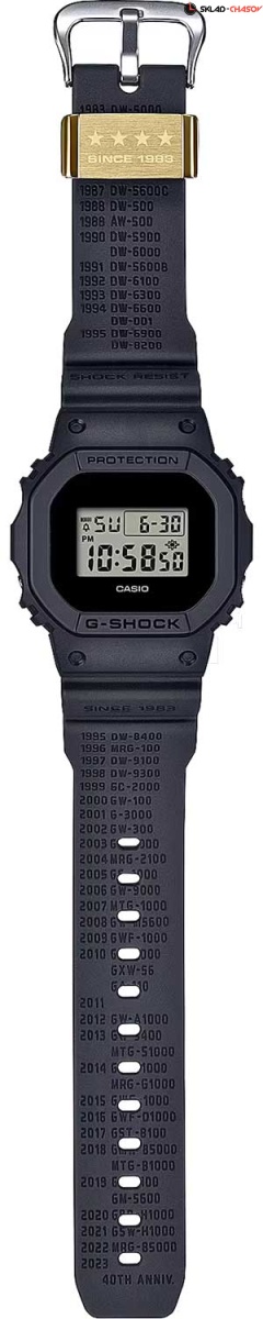 Лимитированная новинка от Casio - настоящая находка для любителей уникальных аксессуаров. G-Shock 40th Anniversary. Лимитированная серия посвящена 40-летию G-SHOCK. Корпус и ремешок выполнены из биопластика, который изготавливается из возобновляемых органических ресурсов. Одна из боковых кнопок украшена выгравированной звездой. Противоударный корпус защищает механизм от ударов и вибрации. Циферблат подсвечивается ярким светодиодом. Послесвечение. Цвет подсветки: белый. Световая индикация сигнала. Типы сигналов: ежедневный, ежемесячный, каждый день определенного месяца, на определенную дату. 12-ти и 24-х часовой формат времени. Секундомер с двумя точностями показаний: 1/100с (до 1ч) и 1с (после 1ч) и временем измерения 24ч. SPLIT-хронограф. Таймер обратного отсчета от 1с до 24ч с автоповтором. Батарейка рассчитана на 5 лет. Стальная задняя крышка крепится на 4-х винтах. Задняя крышка крепится на 4-х винтах и украшена логотипом, созданным граффити-художником Эриком Хейзом в ознаменование 40-летия G-SHOCK. Водонепроницаемость в соответствии с ISO 2281. На ремешке путем горячей штамповки нанесены года и модели, начиная с самых первых G-SHOCK выпущенных в 1983 году. Классическая застежка и система быстрой замены ремешка. В комплекте сменный круглый безель. Подарочная упаковка.