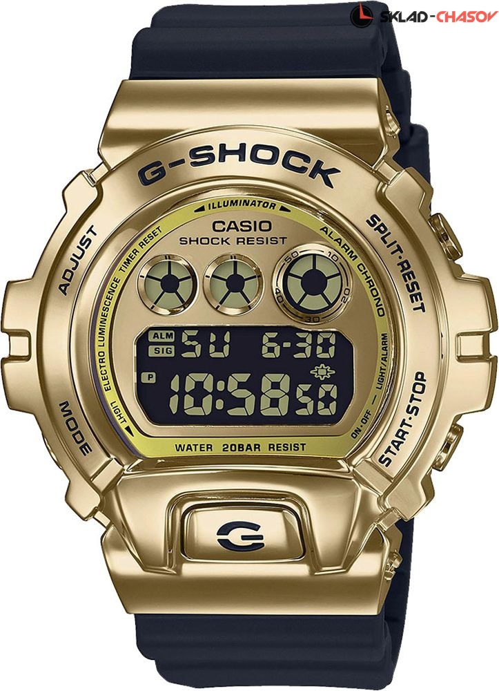 Casio G-Shock DW-6900 в новом стальном обличии. Корпус часов выполнен из полимера, укрепленного карбоновыми волокнами, поверх которого наложена литая стальная накладка. Благодаря подобной структуре, часы обладают великолепным внешним видом и абсолютной ударопрочностью, ставшей визитной карточкой коллекции. Электролюминесцентная подсветка освещает весь циферблат, после отпускания кнопки свечение продолжается еще некоторое время. Цвет подсветки: сине-зеленый. Световая индикация сигнала. Секундомер с двумя точностями показаний: 1/100 сек. (до 1 часа) и 1 сек. (после 1 часа) и временем измерения 24 часа, сплит-хронограф. Таймер обратного отсчета от 1 минуты до 24 часов с автоповтором. 12-ти и 24-х часовой формат времени. Типы сигналов: ежедневный, ежемесячный, каждый день определенного месяца, на определенную дату. Автоматический календарь до 2099 года. Ремешок из полимерного материала. Вес 96 грамм. Гарантия 2 года.