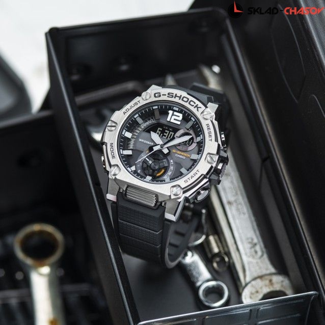 Новинка Casio в серии G-Shock G-Steel. Новый, еще более легкий корпус из стали и карбона, аналого-цифровой циферблат и появление секундной стрелки, — все это визуально выделяет часы GST-B300 от своих собратьев по серии. Питание от солнечной энергии Tough Solar - солнечные батарейки большой мощности, индикатор заряда батареи. Функция автоматического сохранения энергии. Время работы аккумулятора без подзарядки приблизительно 6 месяцев, при включенной функции сохранения энергии приблизительно 19 месяцев. Противоударный корпус защищает механизм от ударов и вибрации. Ударопрочная конструкция Carbon Core Guard объединяет корпус и заднюю крышку в единый карбоновый моноблок. Двойная подcветка: лицо и циферблат подсвечиваются ярким светодиодом при недостаточном освещении, во время поворота запястья подсветка включается автоматически. Цвет подсветки: белый. Необритовое светонакопительное покрытие обеспечивает длительное послесвечение в темноте даже после кратковременного нахождения на свету. 12-ти и 24-х часовой формат времени. Секундомер с точностью показаний 1/1000с и временем измерения 24ч. SPLIT-хронограф. Таймер обратного отсчета от 1сек до 24ч. Мировое время – 39 городов (39 часовых поясов), всемирное координированное время (UTC). Автоматический переход на зимнее и летнее время, возможность включения/отключения данной функции. Беспроводная технология Bluetooth® 4.0 со сверхнизким потреблением энергии для синхронизации со смартфоном. Автоматическое подключение к серверу времени через смартфон для корректировки текущего и настроек мирового времени. Функции перемещения стрелок для беспрепятственного просмотра информации на дисплее, отключения/включения звука, поиска телефона. Заводная головка с защитой. Ремешок с классической застежкой. Вес 91 грамм. Гарантия 2 года.