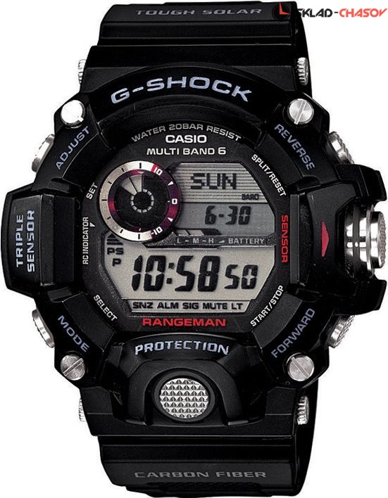 Кварцевые наручные часы Casio GW-9400-1E как нельзя лучше подойдут тем, кто предпочитает вести активный образ жизни. Данная модель выделяется обилием функционала: питание от солнечных батарей, автоподсветка, коррекция времени по радиосигналу на территории почти всей Европы, США, Японии и Китая, цифровой компас, датчики давления и высоты, класс водозащиты WR 200, а также будильникВ В с функцией повтора сигнала. Все это умещается в миниатюрном корпусе наручных часов Касио GW94001E из высокотехнологичного пластика.12-ти и 24-х часовой формат времени.Автоподсветка, при наклоне часов в сторону лица для считывания, функция автоподсветки обеспечивает автоматическое включение яркой цветной подсветки. Питание от солнечной энергии.Высотомер - встроенный датчик барометрического давления с возможностью вывода результатов в единицах высоты над уровнем моря (от -700 до 10000 метров). Память данных высотометра до 40 записей. Барометр - измерение атмосферного давления от 260 до 1100 гПа (от 7, 65 до 32,45 мм рт.ст.). Встроенный датчик температуры от -10° до +60°С с точностью 0,1°C.Ежечасный сигнал.Отображение времени восхода и захода Солнца.Функция сохранения энергии, время работы аккумулятора без подзарядки - 8 месяцев, с использованием функции сохранения энергии - 23 месяца.Функция включения/отключения звука кнопок.Вес 93 г. Гарантия 2 года.