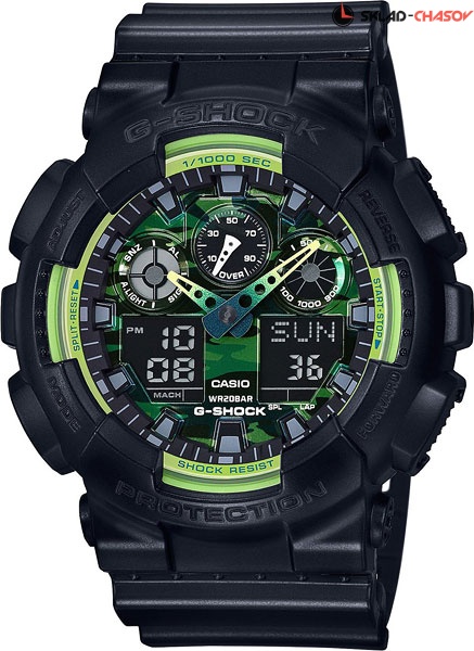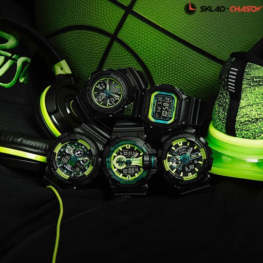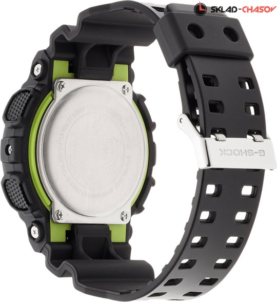 Классические часы G-Shock представлены в новом летнем образе с лаймовыми зелеными акцентами. G-Specials Lime. Противоударный корпус защищает механизм от ударов и вибрации. Циферблат подсвечивается светодиодом, функция автоподсветки освещает циферблат при повороте часов к лицу. Защищены от магнитных полей. Мировое время – 48 городов (29 часовых поясов), всемирное координированное время (UTC). Функция включения/отключения летнего времени. 12-ти и 24-х часовой формат времени. Секундомер с точностью показаний 1/1000с и временем измерения 100ч. Расчет скорости по выбранной дистанции. Сплит-хронограф. Таймер обратного отсчета от 1мин до 24ч с автоповтором. 12-ти и 24-х часовой формат времени.