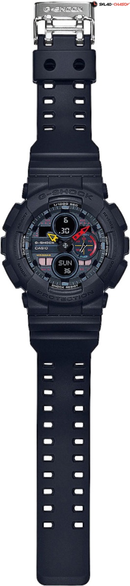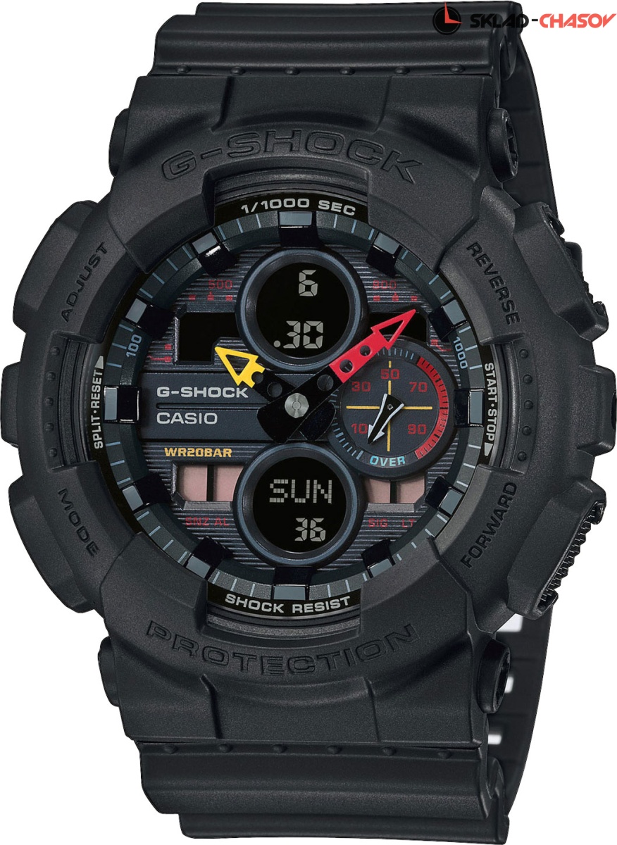Функциональность для дня и ночи, работы и спорта. Не упустите свой шанс быть на высоте! G-Shock. Новый вариант модели в серии часов GA. Часы GA-140 выполнены в стиле классической модели GA-100. Противоударный корпус защищает механизм от ударов и вибрации. Защищены от магнитных полей. Светодиодная автоподсветка включается при повороте циферблата в сторону лица. Цвет подсветки - оранжевый. 12-ти и 24-х часовой формат времени. Мировое время – 48 городов (29 часовых поясов), всемирное координированное время (UTC). Функция включения/отключения летнего времени. Секундомер с точностью показаний 1/1000с и временем измерения 100ч. Расчет скорости по выбранной дистанции. SPLIT-хронограф. Таймер обратного отсчета от 1мин до 24ч с автоповтором. Задняя крышка на 4-х винтах.