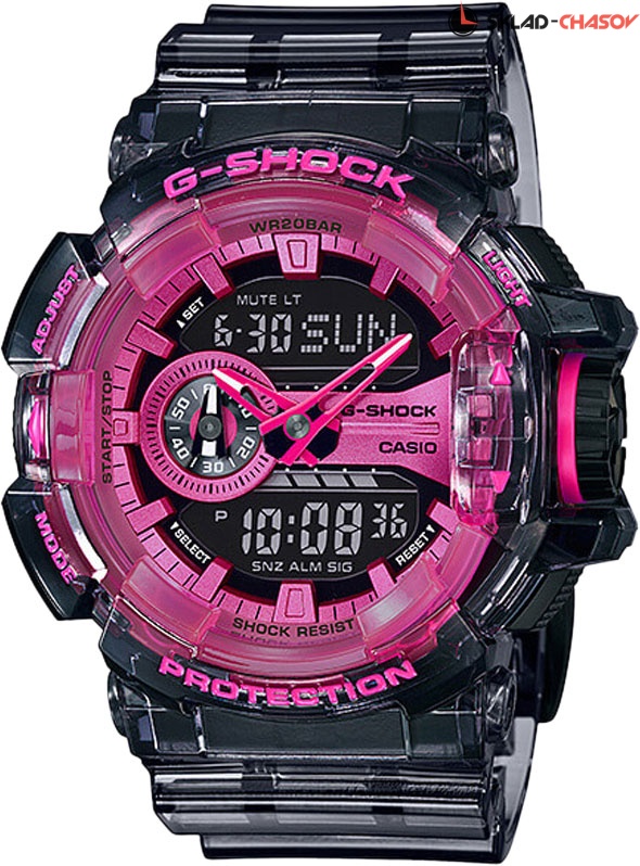 Многофункциональные часы в новой цветовой гамме идеально подойдут активным молодым людям, которые любят заниматься спортом. G-Shock. Модные часы которые сочетают в себе внешний вид 80-х годов и популярную полупрозрачную смолу с ярким циферблатом. Противоударный корпус защищает механизм от ударов и вибрации. Циферблат подсвечивается светодиодом, функция автоподсветки освещает циферблат при повороте часов к лицу. Цвет подсветки: оранжевый. Защищены от магнитных полей. Мировое время – 48 городов (31 часовой пояс), всемирное координированное время (UTC). Функция включения/отключения летнего времени. 12-ти и 24-х часовой формат времени. Секундомер с точностью показаний 1/100с и временем измерения 24ч. Сплит-хронограф. Таймер обратного отсчета от 1мин до 1ч с автоповтором. Функция перемещения стрелок для беспрепятственного просмотра информации на цифровых дисплеях. Функция отключения/включения звука.