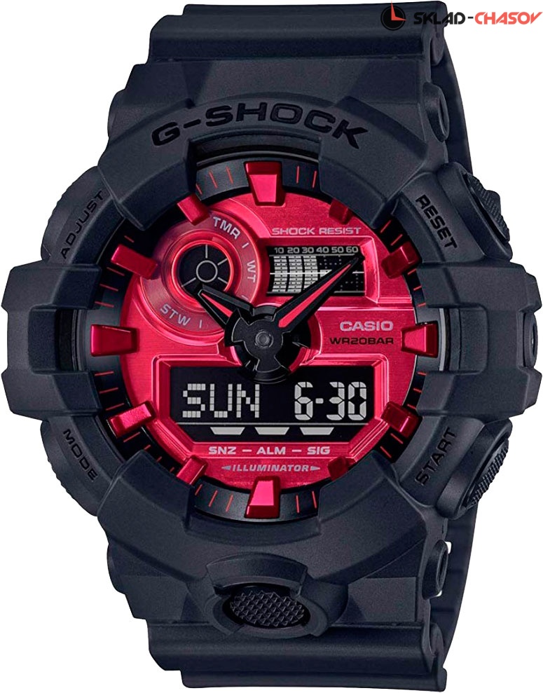 Благодаря новому переосмысленному дизайну и крупным стрелкам, часы имеют не только отличный внешний вид, но и обладают действительно удобной индикацией времени. G-SHOCK. Яркий красный циферблат этих часов отлично подойдет к современному модному образу. Противоударный корпус защищает механизм от ударов и вибрации. Светодиодная автоматическая супер-подсветка. Светодиодная автоподсветка включается при повороте циферблата в сторону лица. Цвет подсветки - белый. Мировое время – 48 городов (31 часовой пояс), всемирное координированное время (UTC). Функция включения/отключения летнего времени. 12-ти и 24-х часовой формат времени. Секундомер с точностью показаний 1/100с и временем измерения до 24ч. SPLIT-хронограф. Таймер обратного отсчета от 1мин до 1ч с автоповтором. Функция перемещения стрелок для беспрепятственного просмотра информации на цифровых дисплеях. Функция отключения/включения звука.