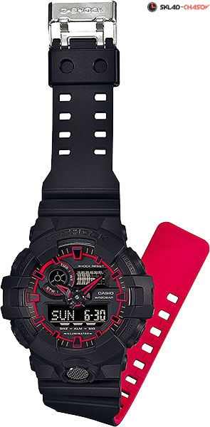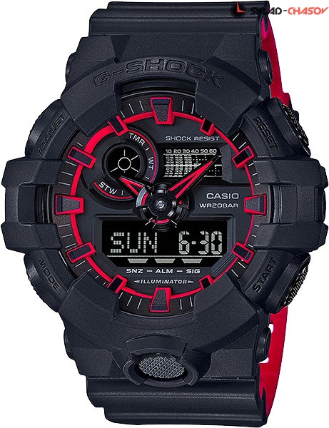 Двухслойный ремешок - черный снаружи и красный внутри. Стильная аутентичная модель с собственной яркой фишкой. Special Color. Противоударный корпус защищает механизм от ударов и вибрации. Циферблат подсвечивается ярким светодиодом. Светонакопительное покрытие необрит продолжает светиться в темноте даже после непродолжительного пребывания на свету. Мировое время – 48 городов (31 часовой пояс), всемирное координированное время (UTC). Функция включения/отключения летнего времени. 12-ти и 24-х часовой формат времени. Секундомер с точностью показаний 1/100с и временем измерения 24ч. Сплит-хронограф. Таймер обратного отсчета от 1мин до 1ч с автоповтором. Функция перемещения стрелок. Функция отключения/включения звука.